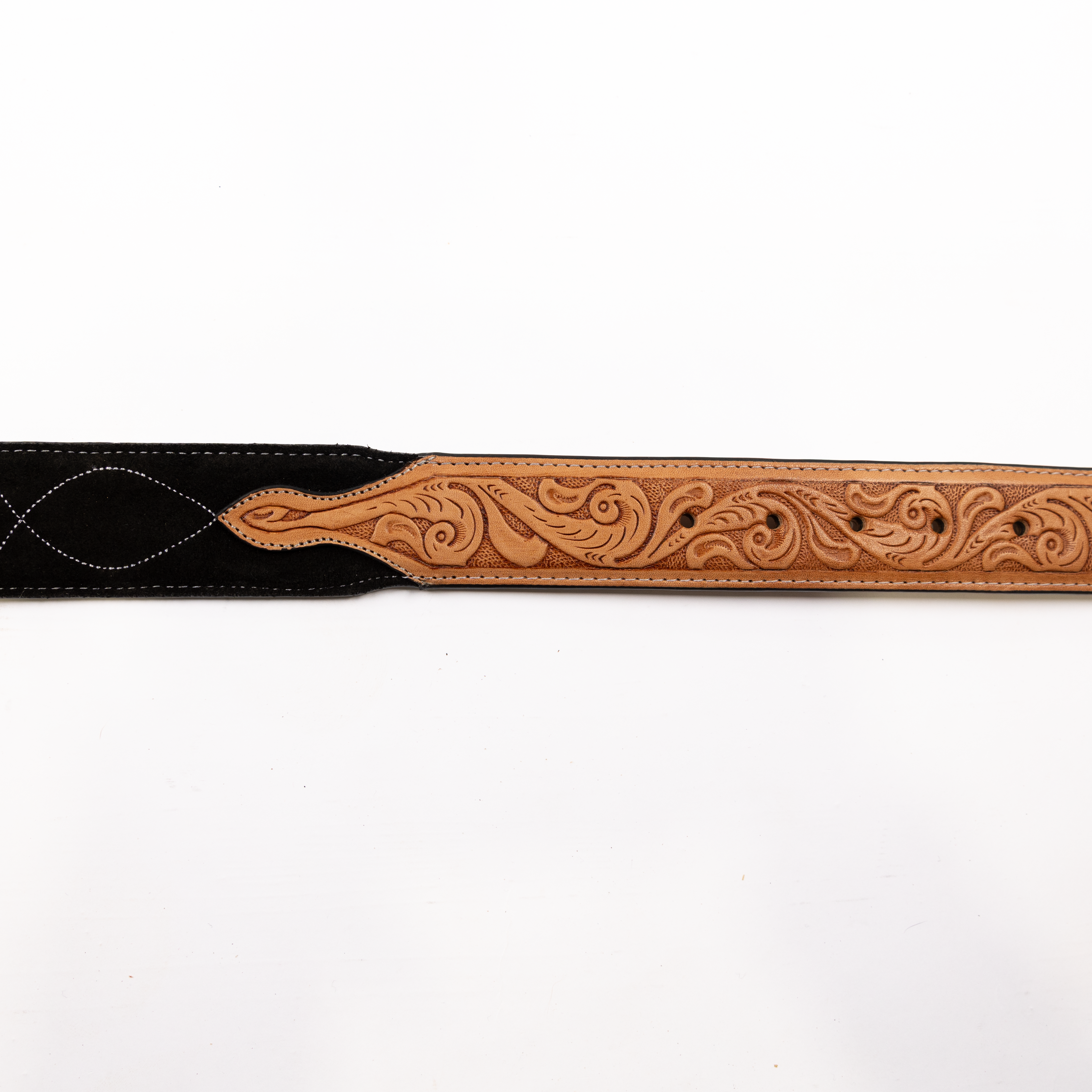 Mens Black Roughout Belt With Stitching/Hand Tooled Leather