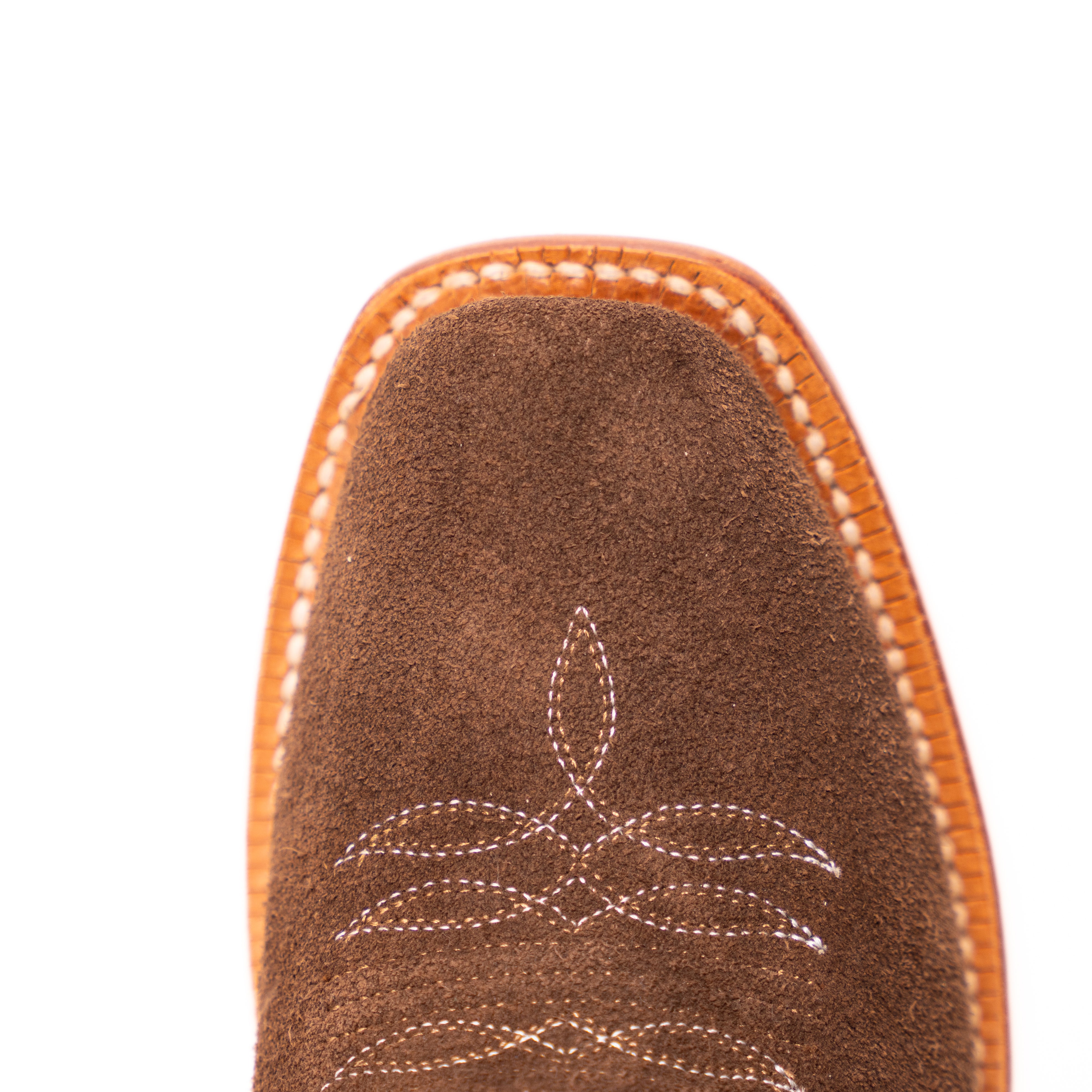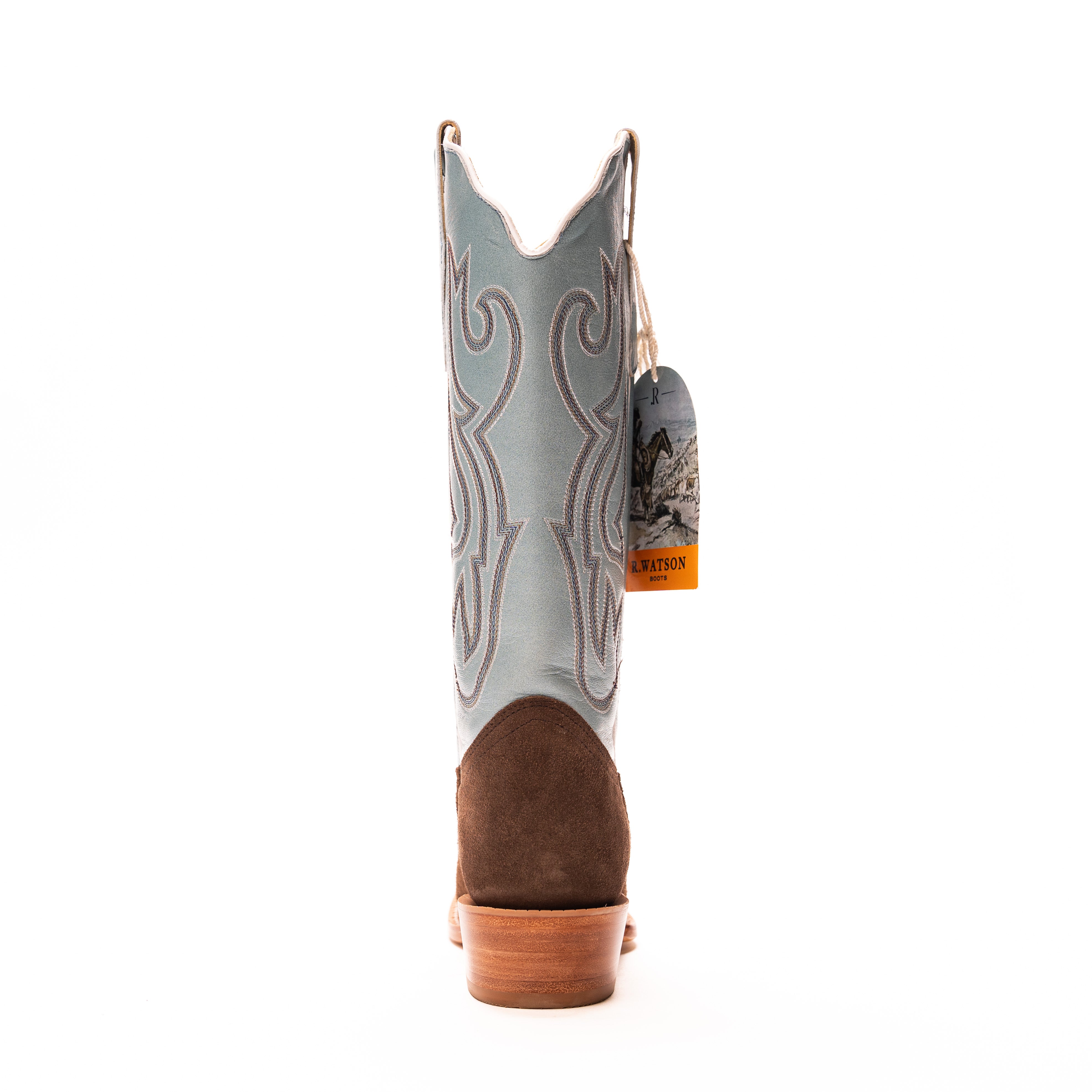R. Watson presents these rough out and goat western boots. These boots have a 10 row stitch pattern, R. Watson comfort system, all leather stacked heel, counters, solid steel shank, and 10 iron outsole. 13″ total in height.