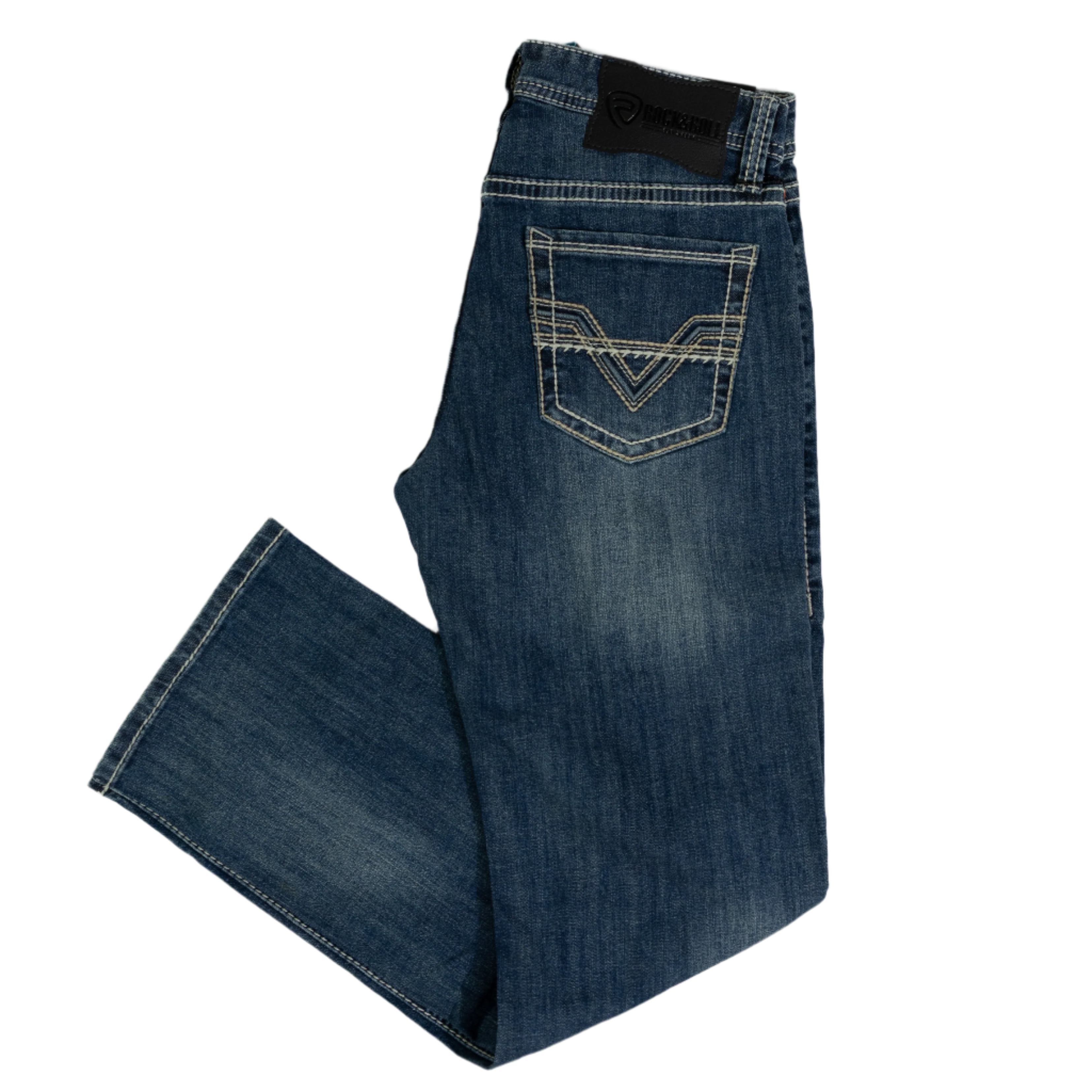 Men's Rock and Roll Denim Revolver Straight Boot Cut Jeans BM1RD07366