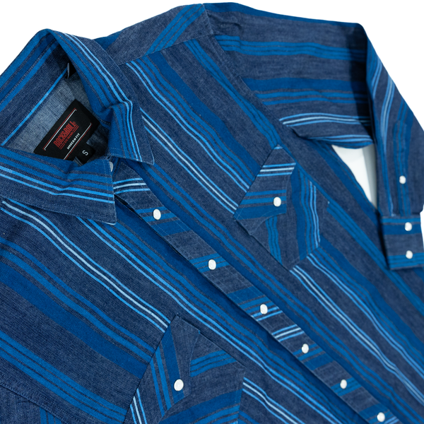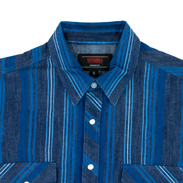 Rock & Roll Denim Men's Long Sleeve Western Snap Shirt in Caribbean Stripe
