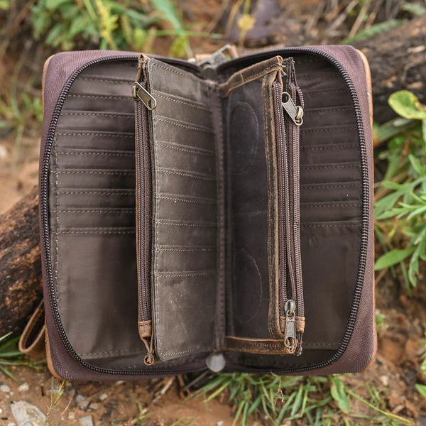 The Chaynee Mountain Kacy Organizer combines an array of full grain and hair on hide leathers with colorful serapes for a unique, vintage feel.
