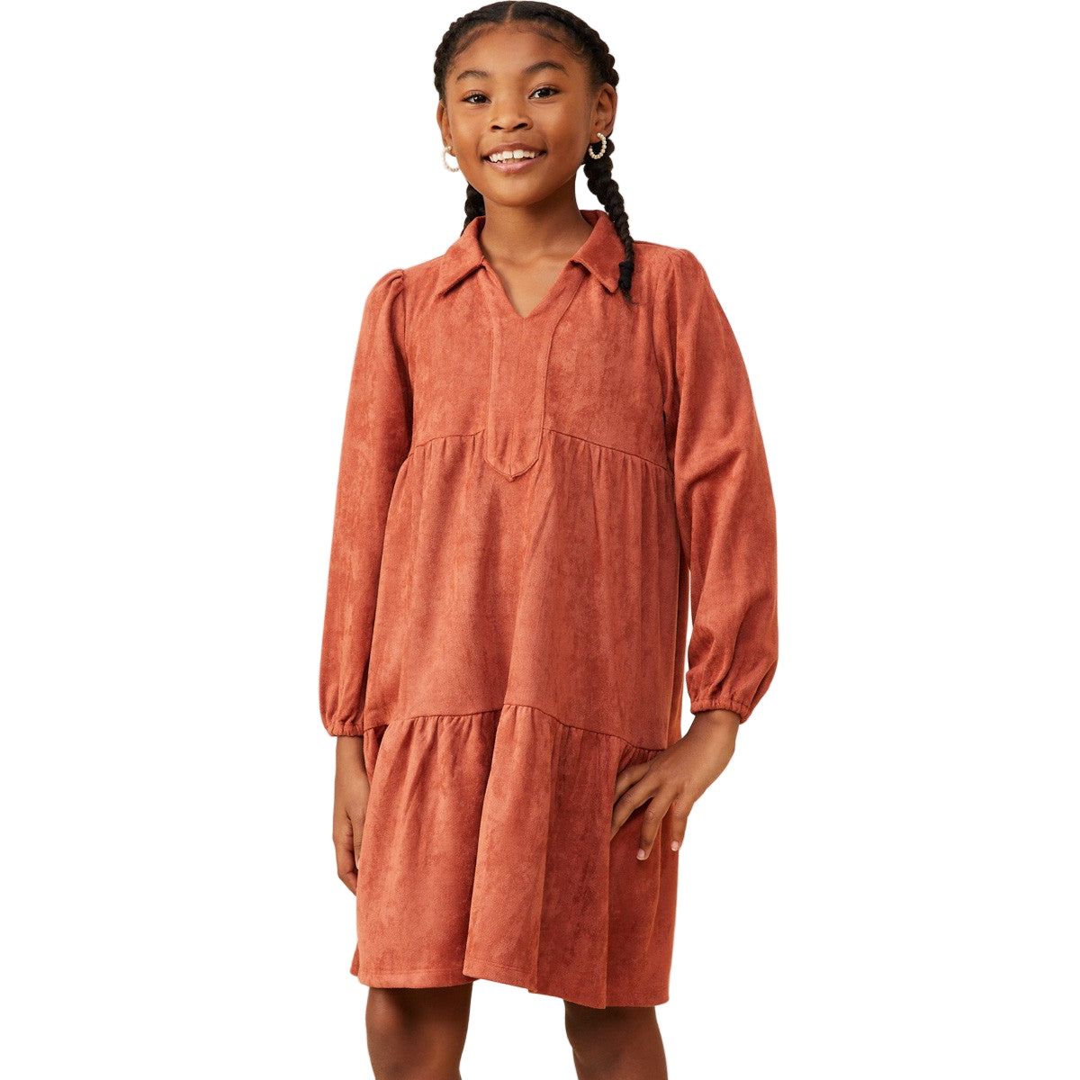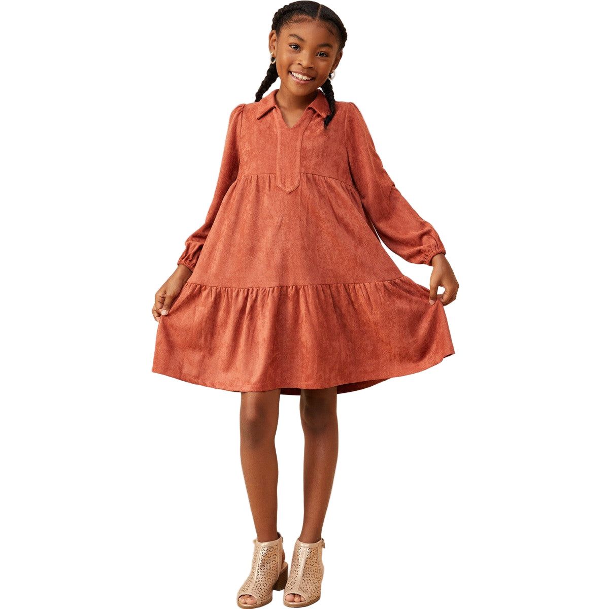 Girls Collar Suede Swing Dress GY8893