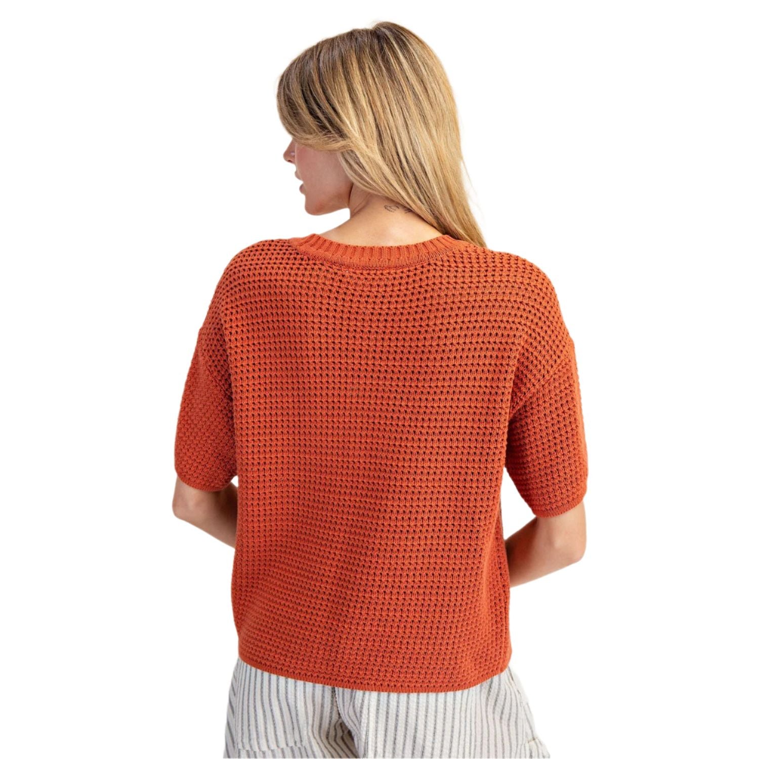 Women's ee:some Waffle Knit Boxy Short Sleeve Sweater SK14491
