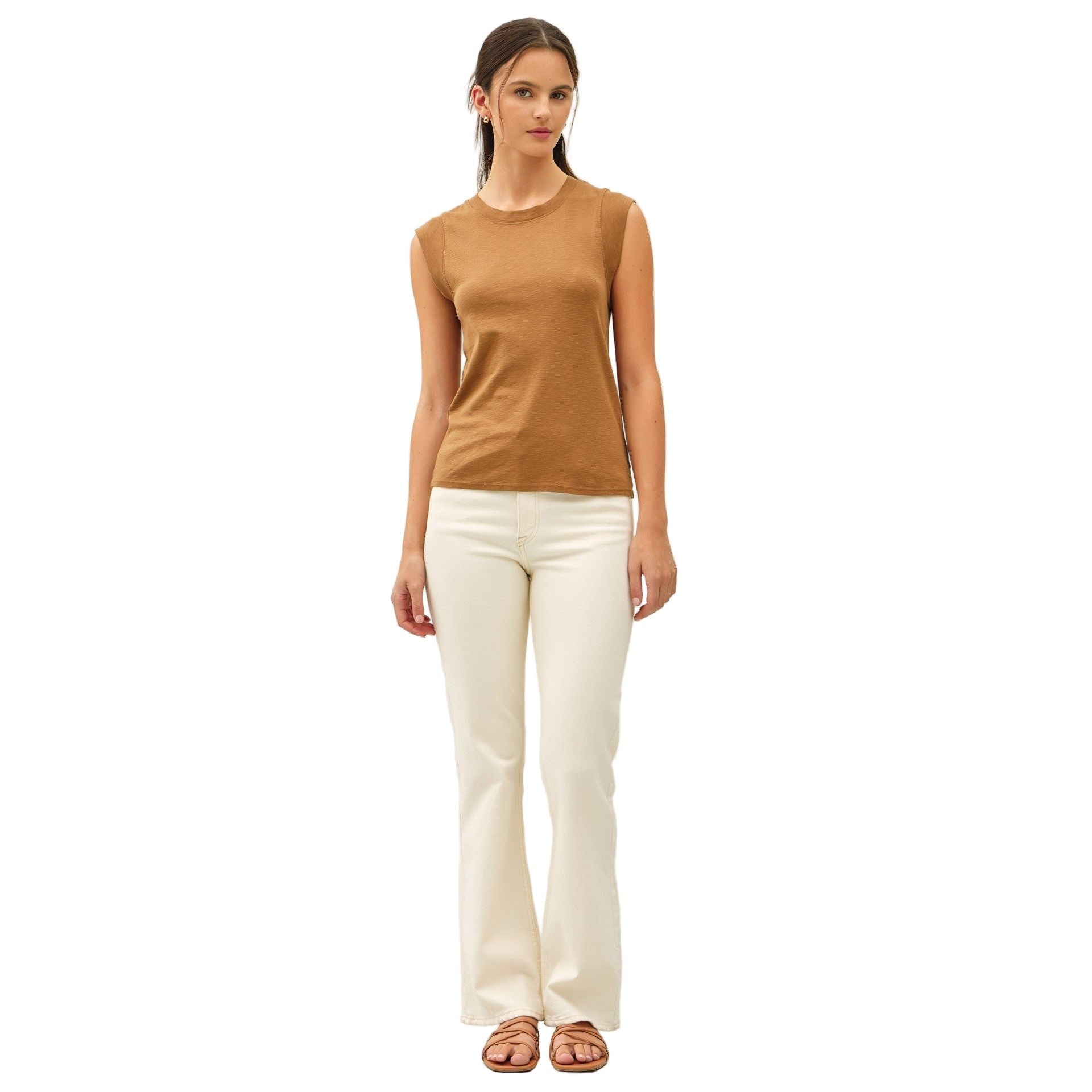 Women's Basic Solid Cotton Crew Neck Cap Sleeve Tank Top 19527