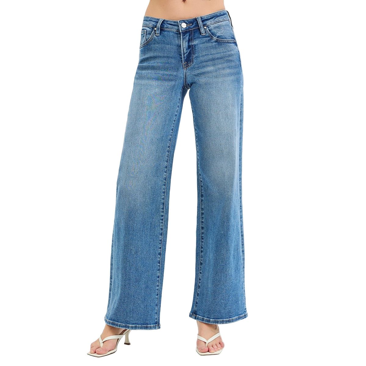Women's Mid Rise Stretch Trouser Wide Leg Jeans P1365W