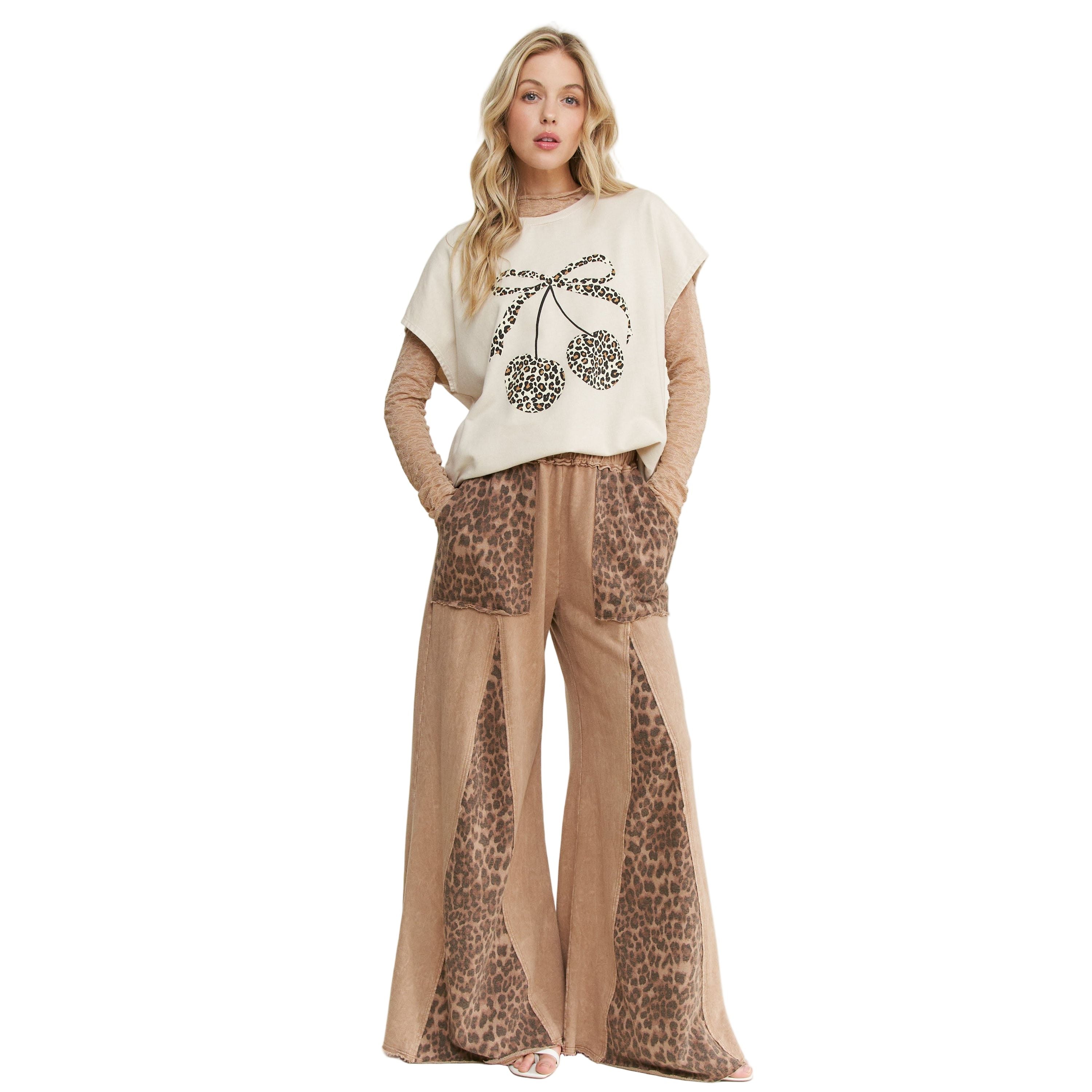 Women's Mineral Washed Animal Leopard Wide Leg Pants HP6583
