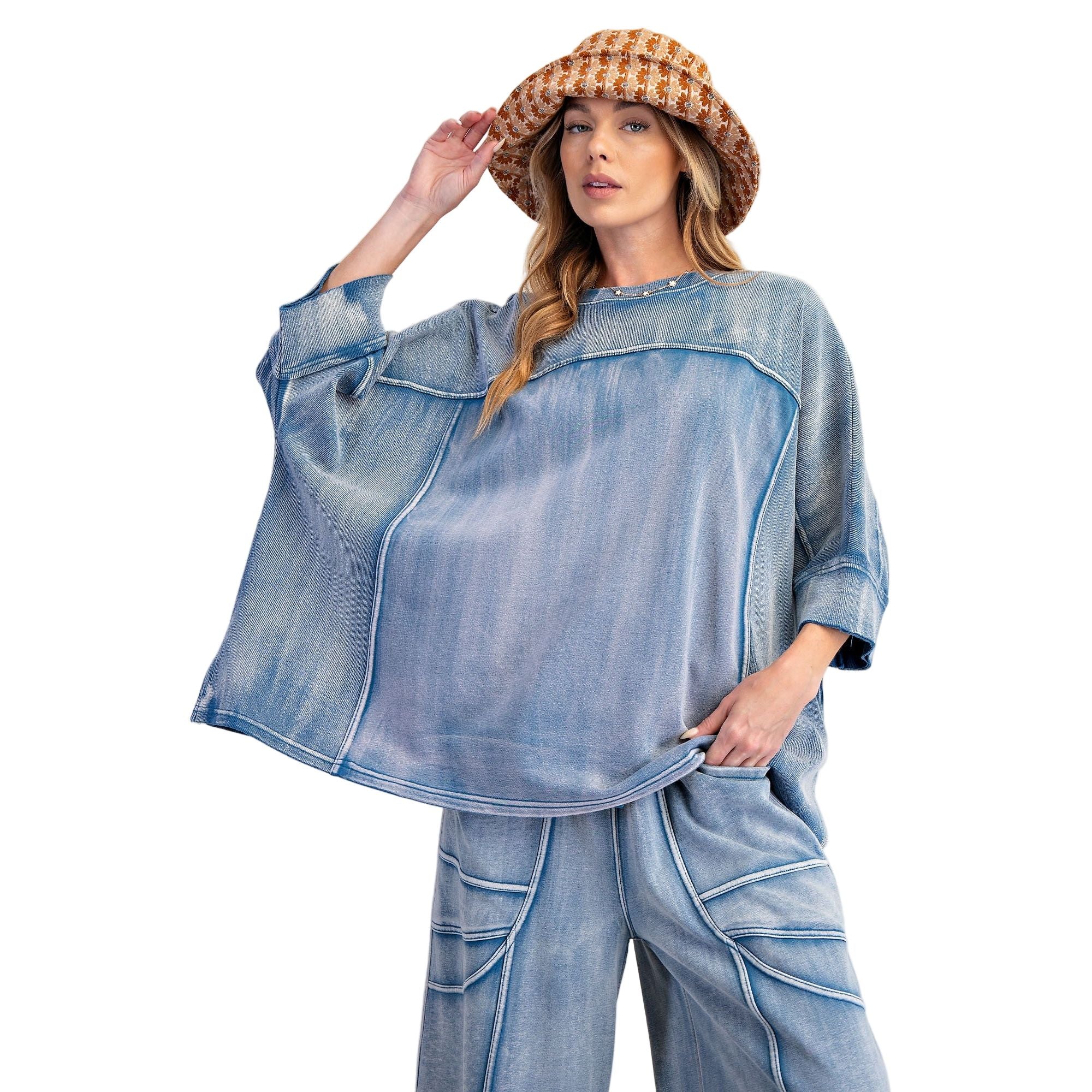 Women's Mineral Washed Thermal Knit Oversized Top ET71499