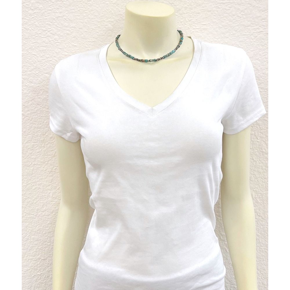 16" to 21" Long, Handmade Navajo Bead, Special Cut Gemstone Necklace * Natural stone may vary in size, color or shape * 16" long necklace & 5" extender * Tiny 4mm navajo bead & 12mm gemstone necklace * 15 grams weight * Nickel, Lead & Chrome free