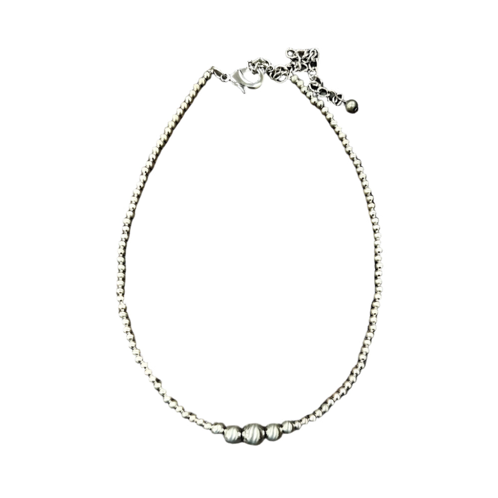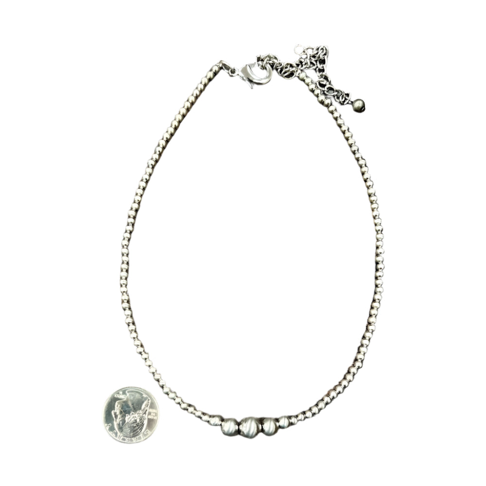 15" to 20" Long, Silver Navajo Bead Necklace * 15" long necklace & 5" extender * 4mm, 6mm, 8mm, 10mm silver navajo bead necklace