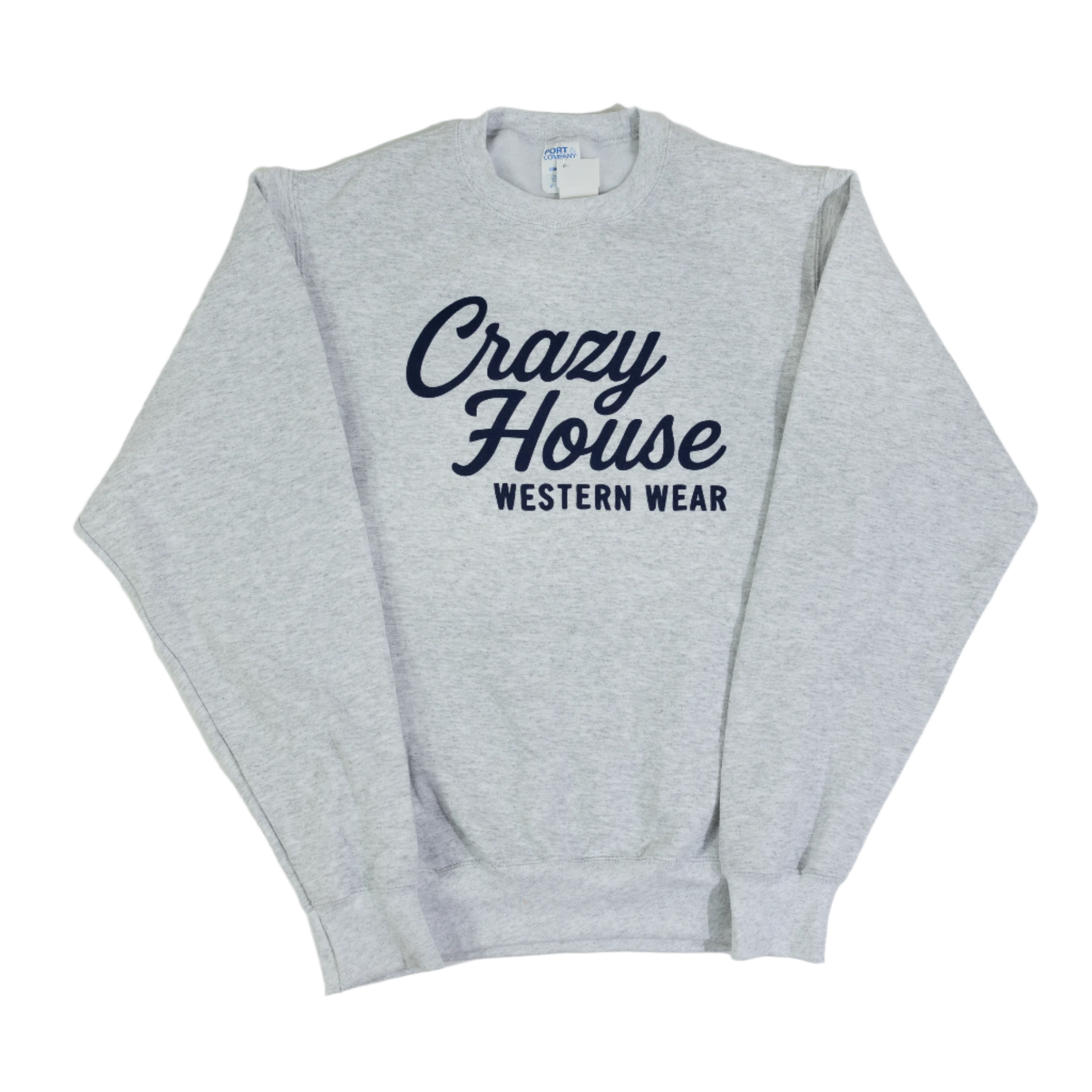Unisex Crazy House Crewneck Sweater, Ash Grey and Navy