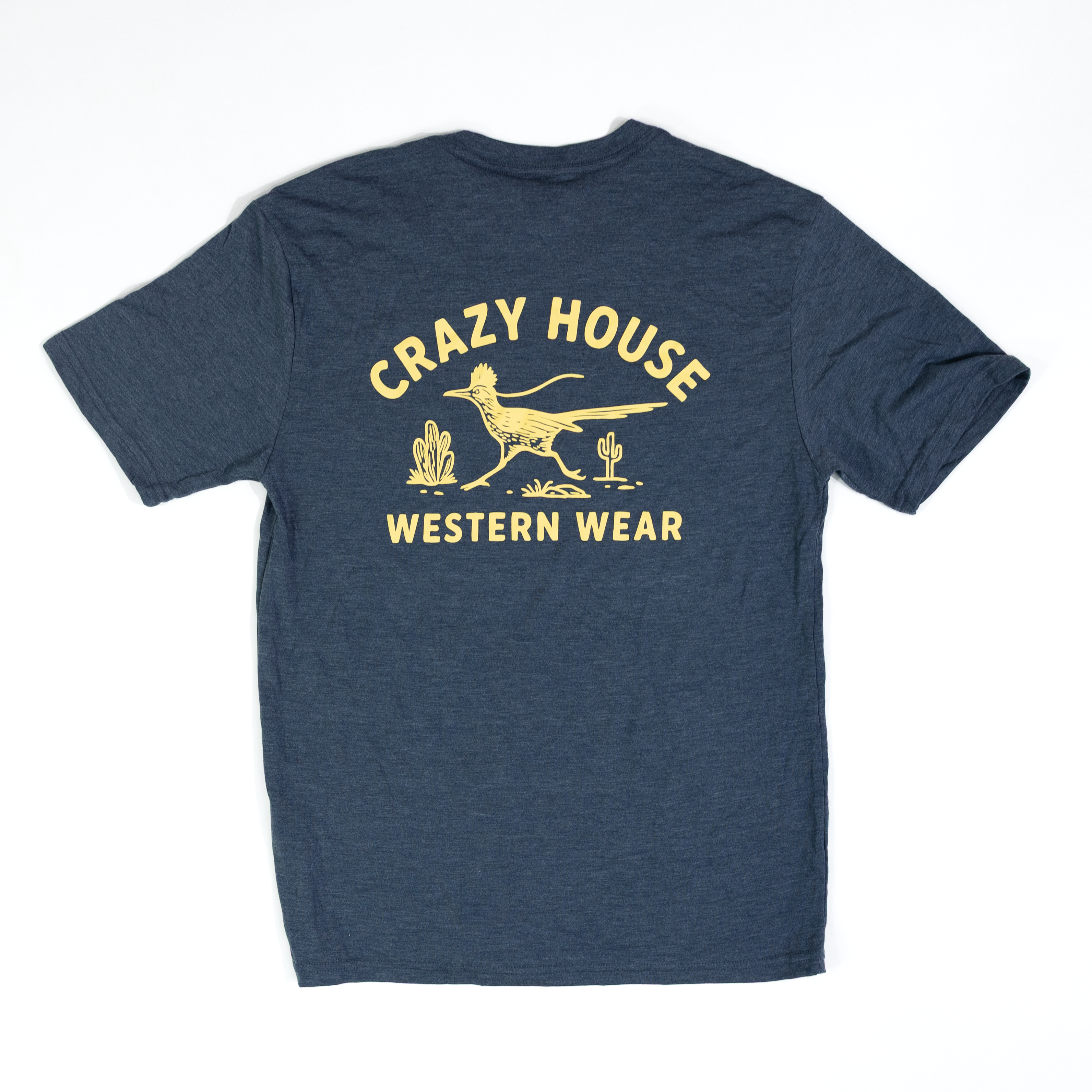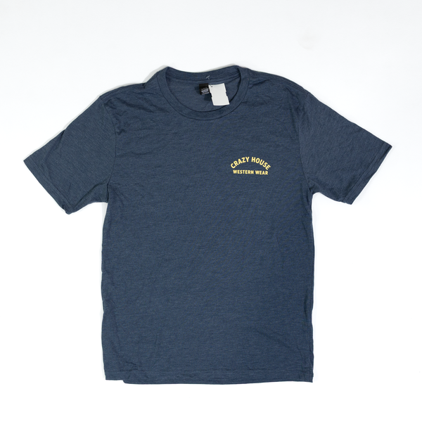 Unisex Crazy House Navy Specialty T-shirt with Design on the Back DM130-NVYFRST-52015