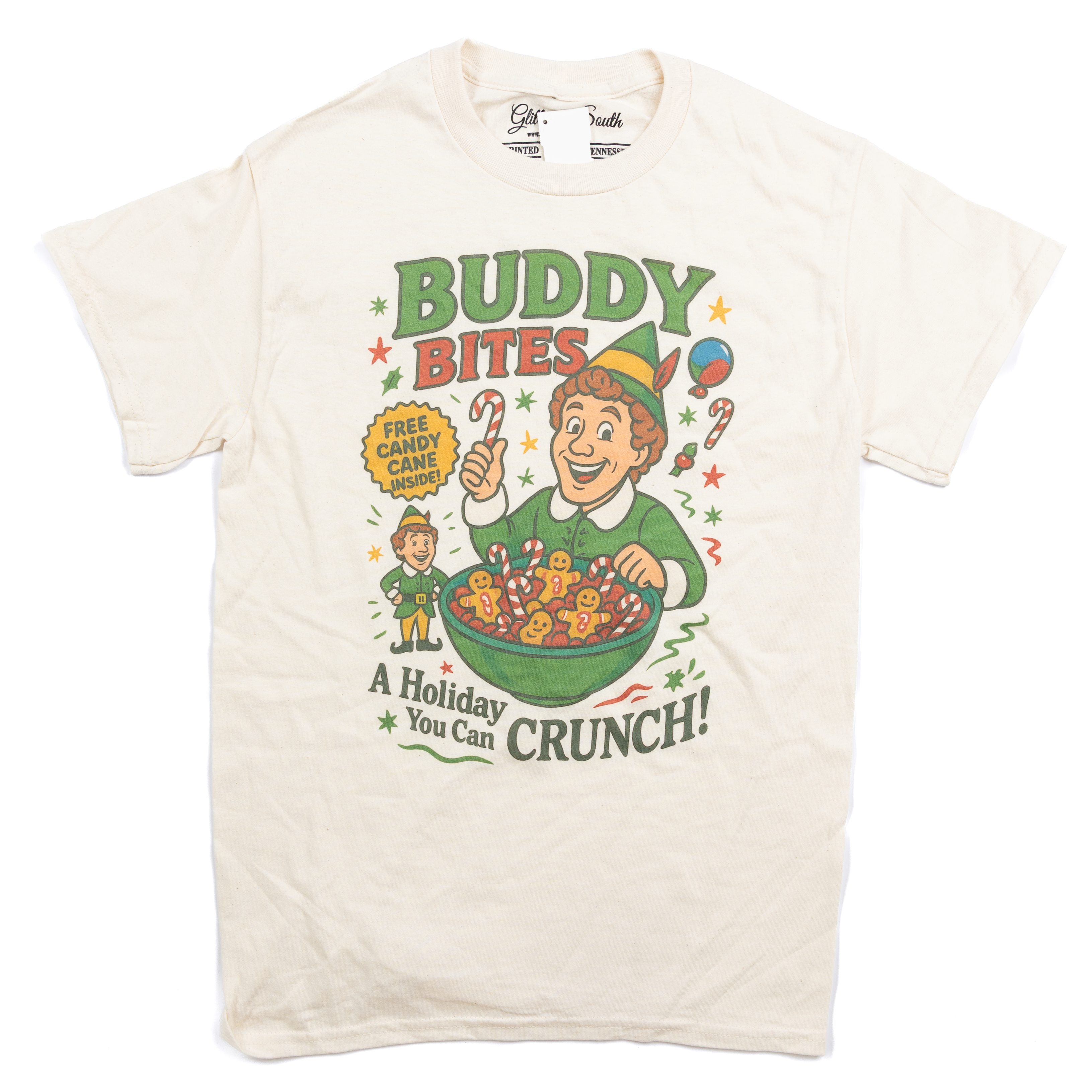 Women's Beige "Buddy Bites" Christmas T-shirt