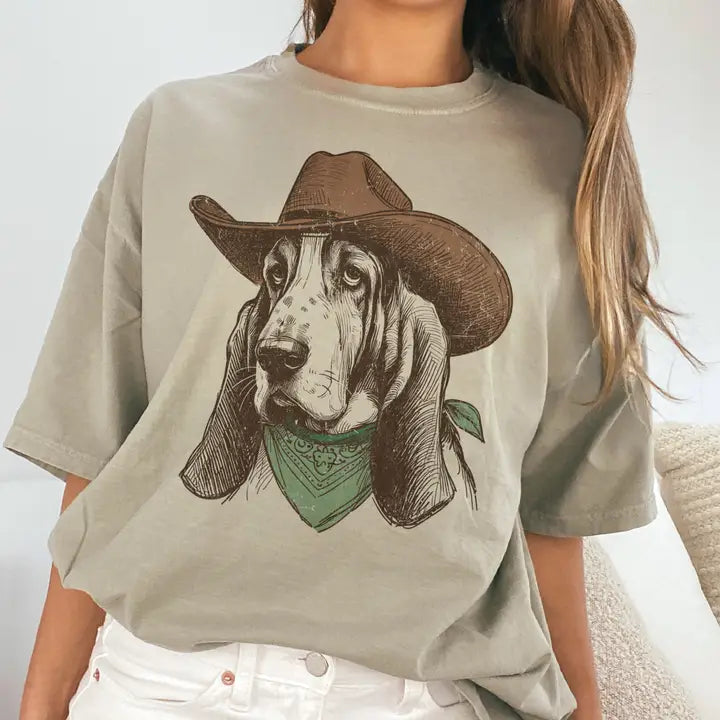 Saddle up with some serious southern charm—our Western Hound Dog Tee brings a boot-stompin’ twist to your favorite pup. Featuring a laid-back hound dog rocking classic western style, this tee is a must-have for dog lovers, country gals, and rodeo-ready wardrobes. Soft, Comfortable Fabric: Great for everything from county fairs to lazy front porch sittin’ Bold Western-Inspired Graphic: Cowboy hat, boots, and hound dog swagger Unisex Sizing: Easy, relaxed fit perfect for pairing with denim or cutoffs Machine Washable: