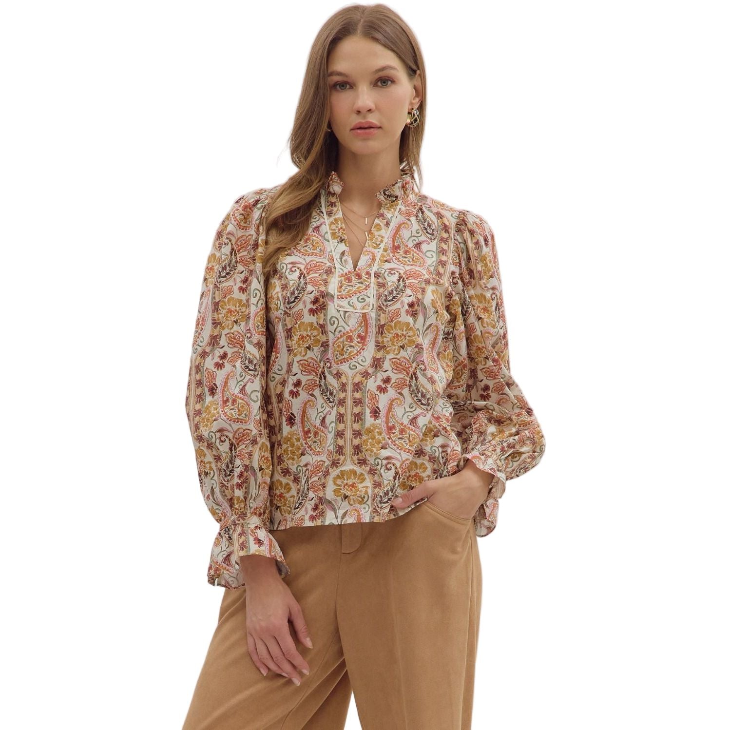 Women's Entro Paisley Print Long Sleeve Blouse T29010