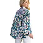 Floral Print Button Down with Contrasting Print Accents Model is 5'7" wearing a small.