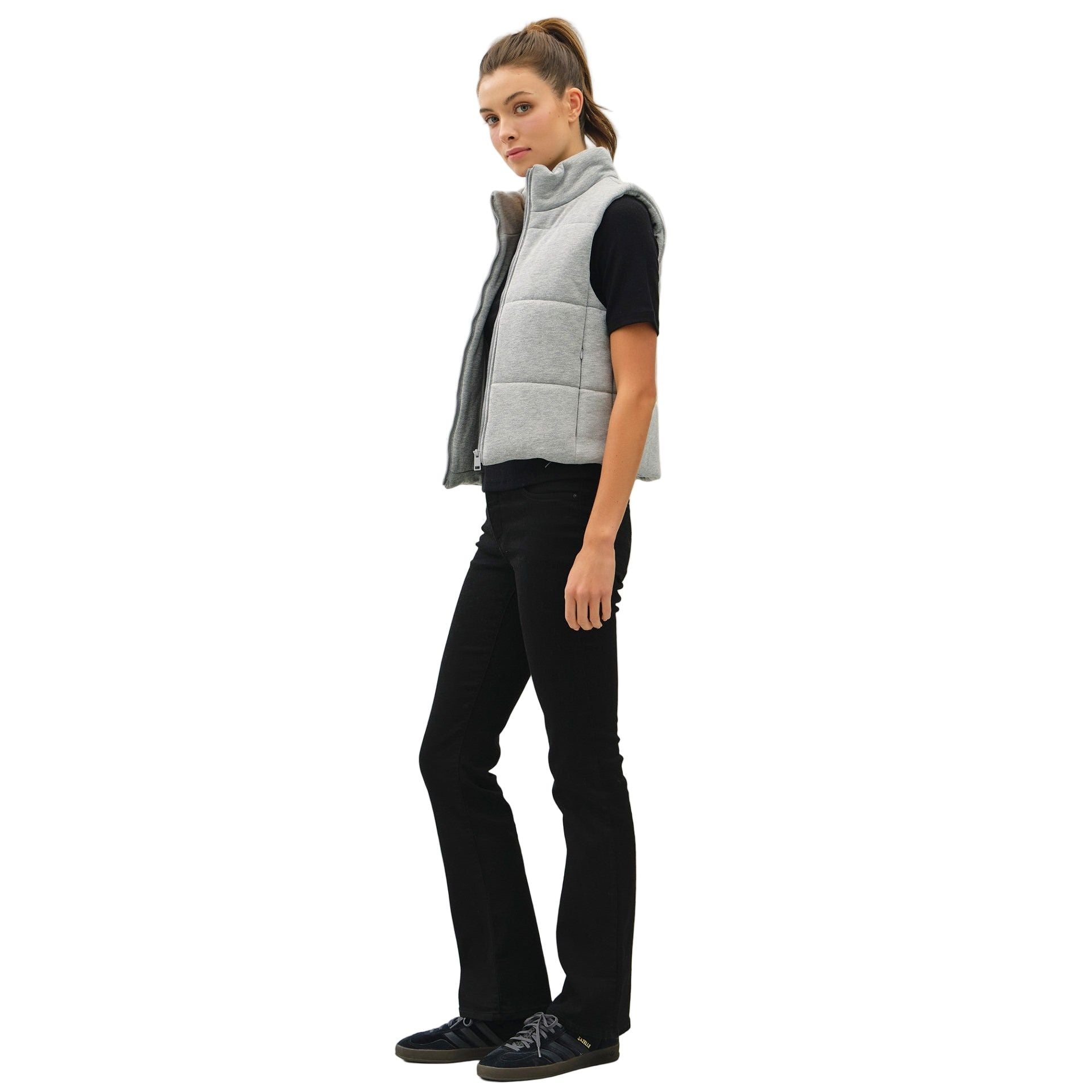 Women's Grey Classic Puffer Zip Up Vest With High Neck 31580