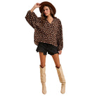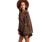 Women's Leopard Plisse Texture Notched Neck Tie Blouse AT3319