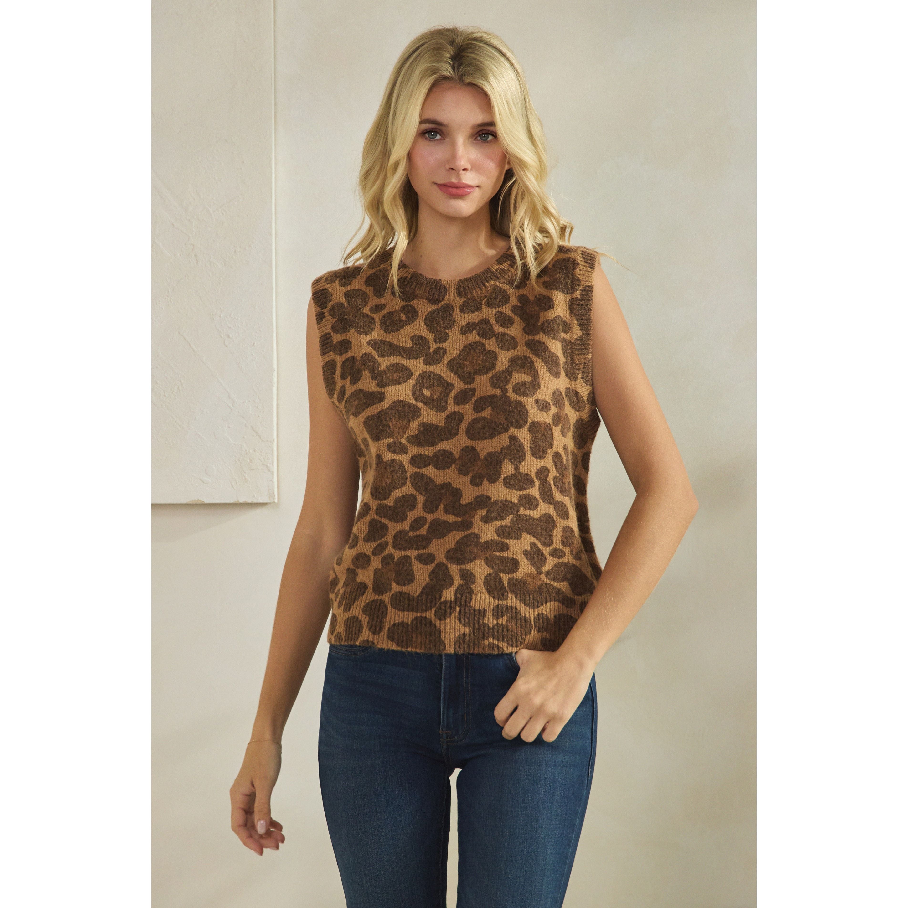 Women's Leopard Wool Blend Vest Sweater SDW6486
