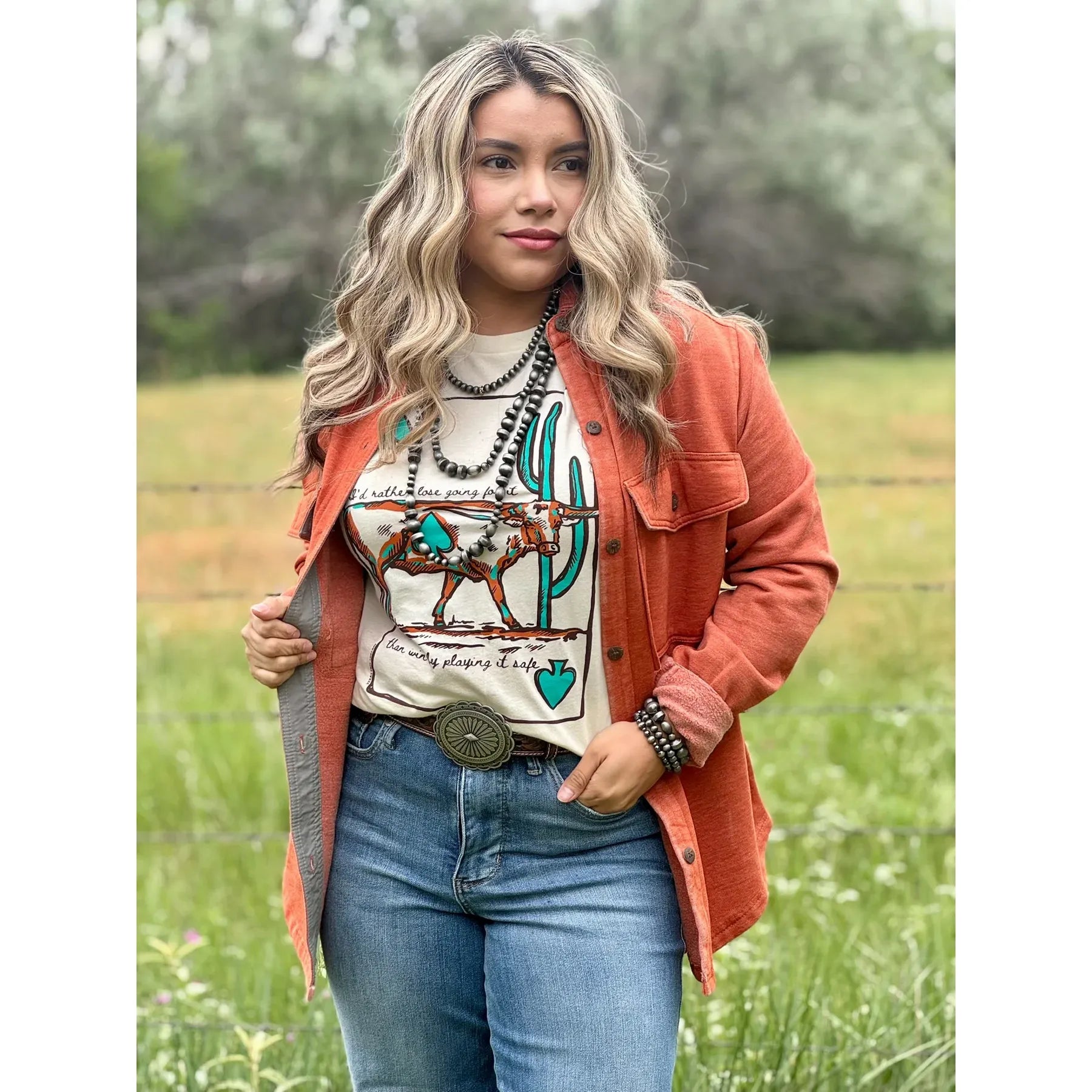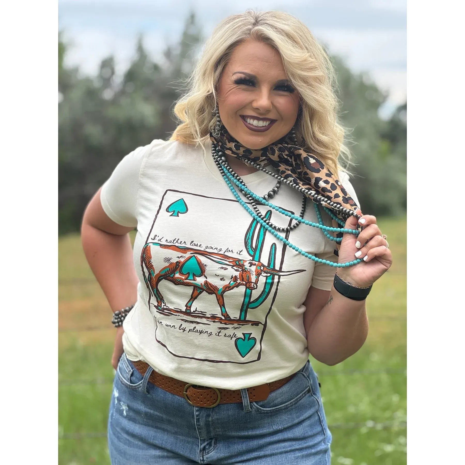 A fun western tee designed in the ace of spades! I'd rather lose going for it, than win by playing it safe!