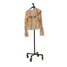 Long sleeve blouse with deep V neckline, cascading ruffle front, and wide pleated bell cuffs for a soft, feminine silhouette 100% Polyester Model is 5'8" tall and wearing size Small