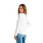 This long sleeve top features a clean and simple design with a soft V-neckline and subtle layered hem detailing. Made from a lightweight, stretchy fabric, it offers all-day comfort and an easy, relaxed fit. Perfect for layering or wearing on its own, it's a versatile staple for casual styling. * Style Number ET6263-RS * Relaxed Fit * Casual * Long Sleeve * V-Neck * Layered Hem * Curvy Plus Size Available Model is 5' 8 and wears a size Small