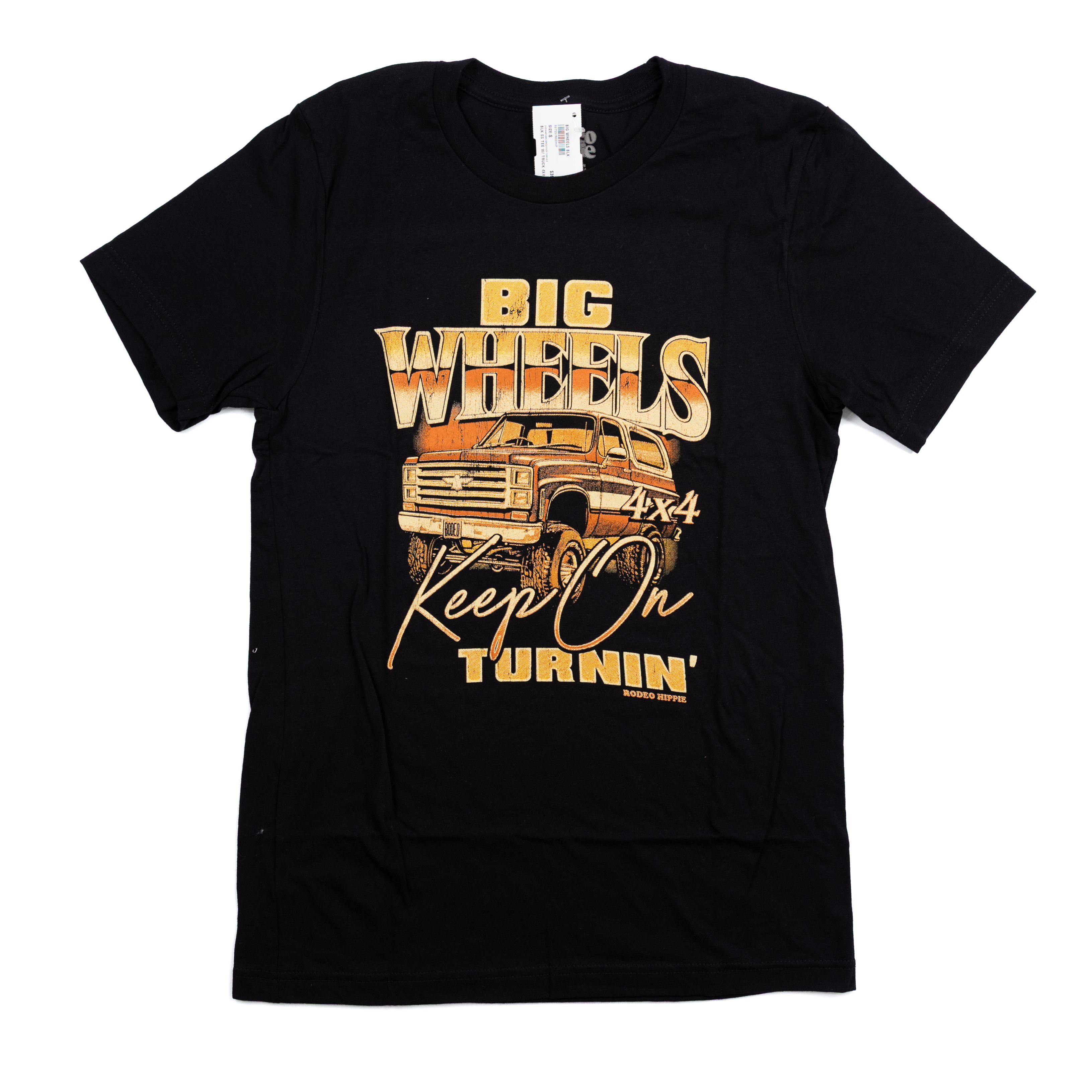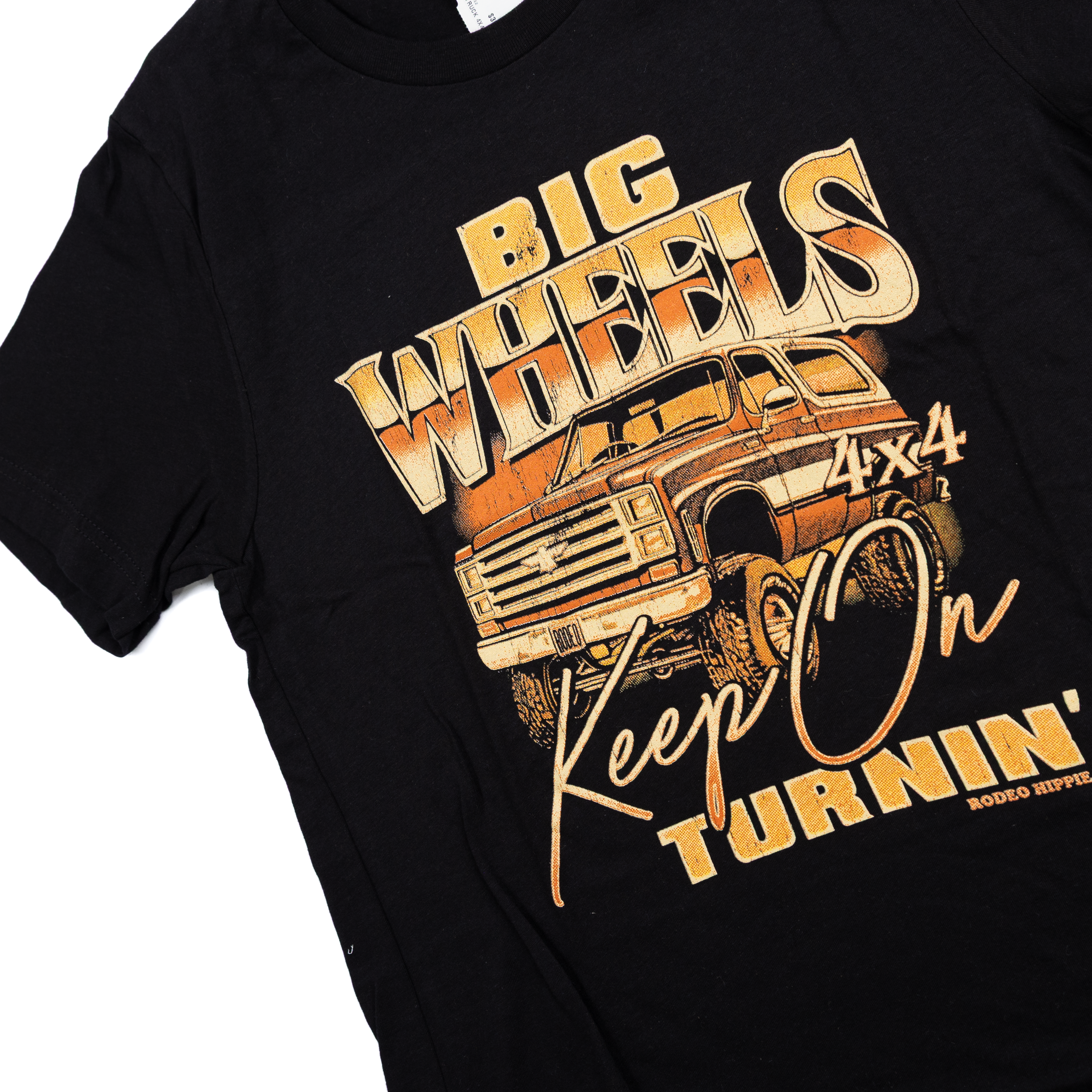 Women's Rodeo Hippie Black Graphic "Big Wheels" T-shirt