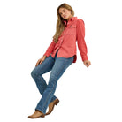 A cowgirl can never have too many snap shirts. Our Women’s Wrangler Retro® Color wash Slim Western Snap Shirt will add a bold hue to your rotation. It’s crafted from 100% cotton for easy care and nonstop comfort. Like a found favorite you didn’t have to hunt down, it comes with a flattering slim fit, one-point yokes from front to back, pearl snaps, and chest pockets with the signature ‘W’ stitching. Plus, the curved hem can be tucked in or left untucked for versatility.