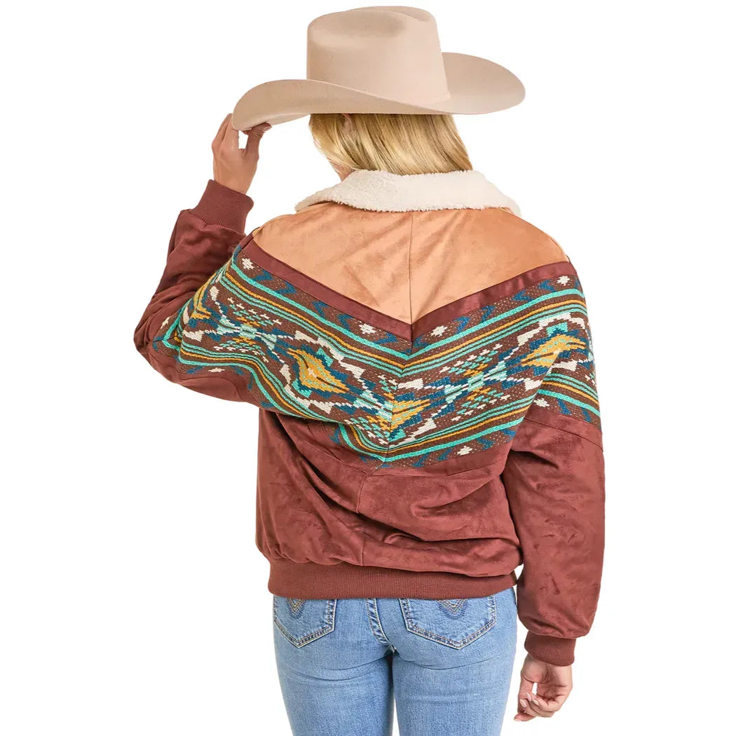Women's Rock and Roll Oversized Microsuede Bomber Jacket BW92C06949