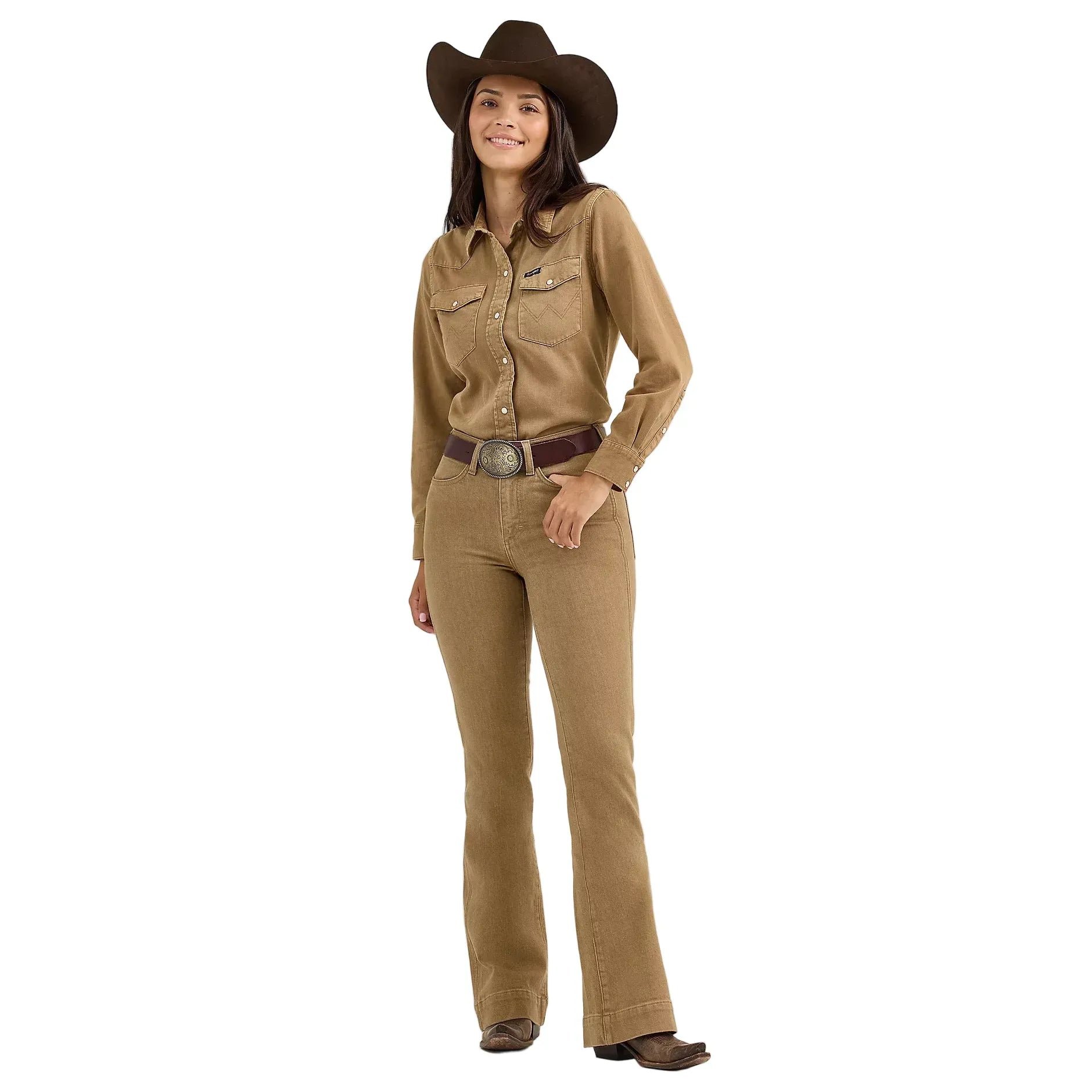 A cowgirl can never have too many snap shirts. Our Women’s Wrangler Retro® Color wash Slim Western Snap Shirt will add a bold hue to your rotation. It’s crafted from 100% cotton for easy care and nonstop comfort. Like a found favorite you didn’t have to hunt down, it comes with a flattering slim fit, one-point yokes from front to back, pearl snaps, and chest pockets with the signature ‘W’ stitching. Plus, the curved hem can be tucked in or left untucked for versatility.