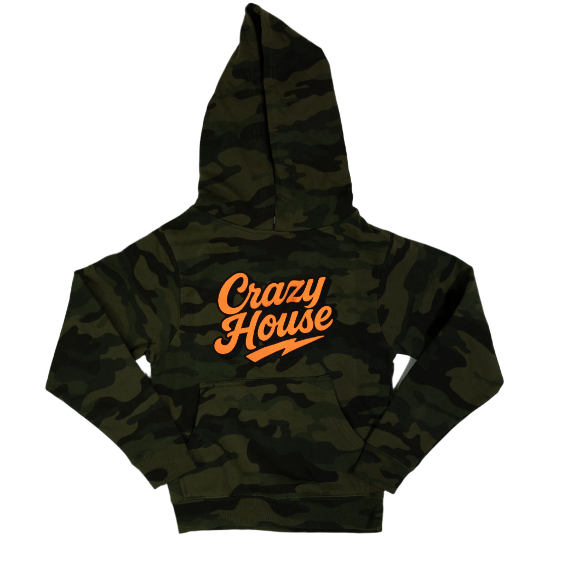 Kid's Unisex Crazy House Camo Hoodie with Orange Letters Printed 32076-CAMO-52158
