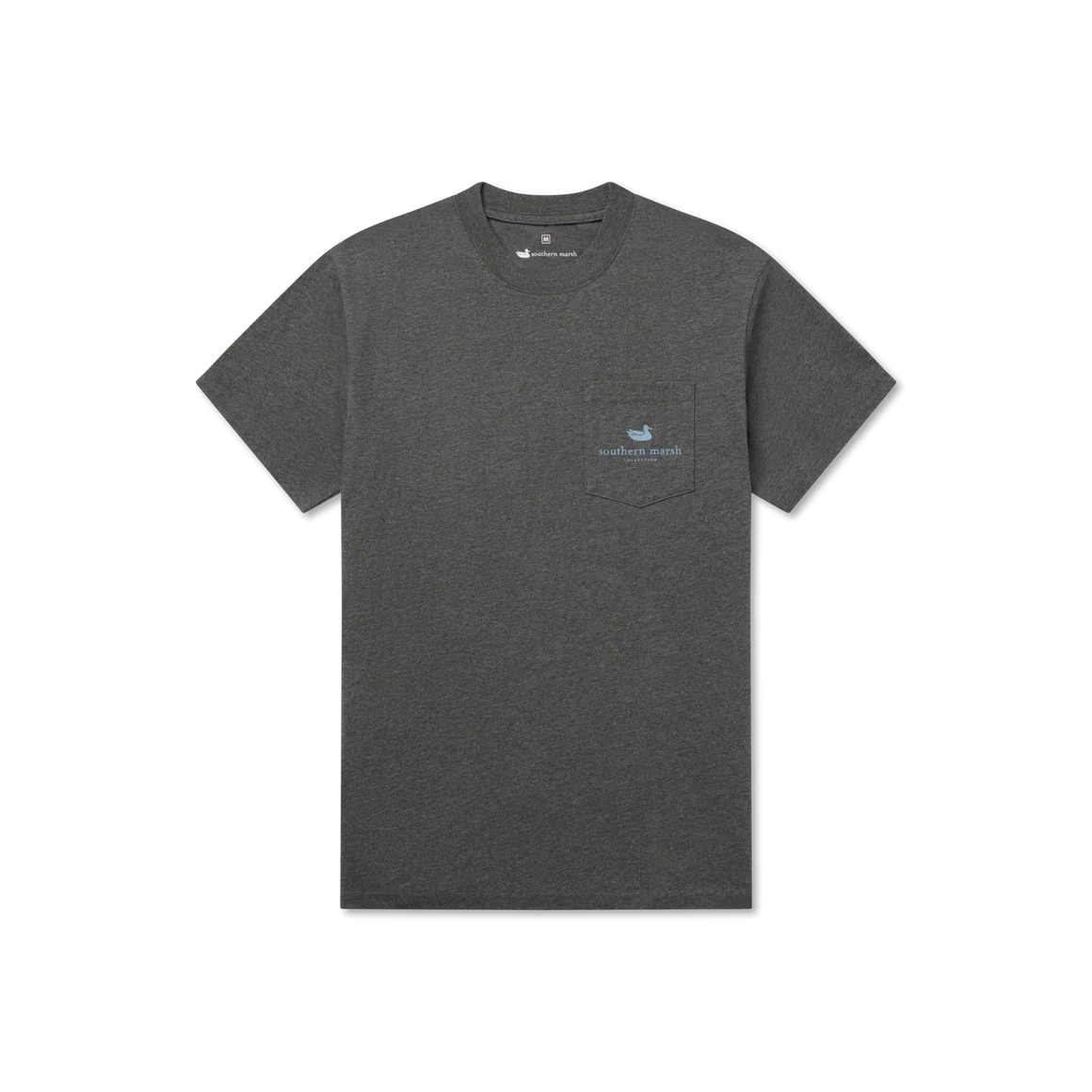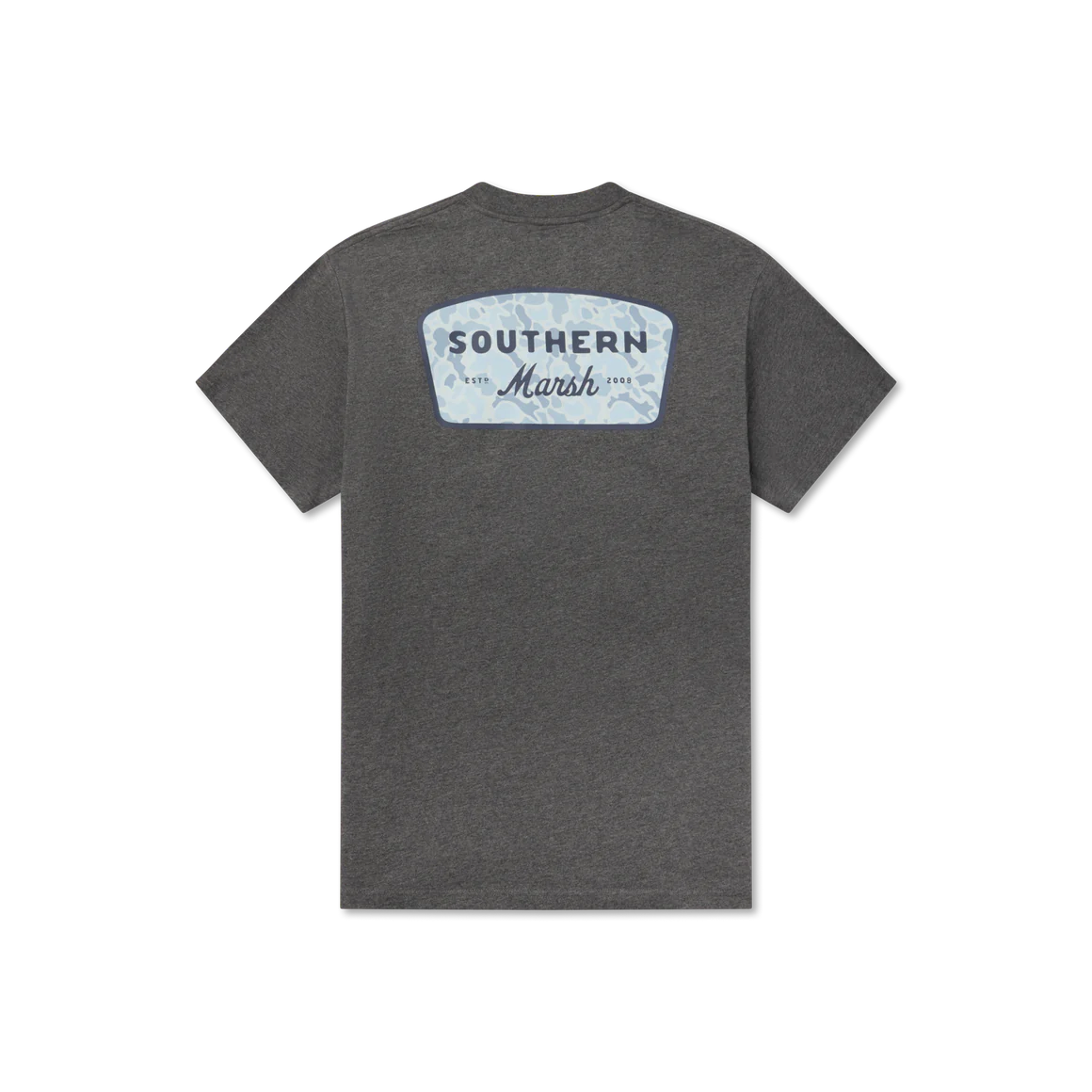 Our Branding - Retro Camo short sleeve cotton tee features Southern Marsh in a camo-filled block design on the back, complemented by a classic chest pocket on front. The ultra soft cotton makes it perfect for everyday wear, blending comfort with style.