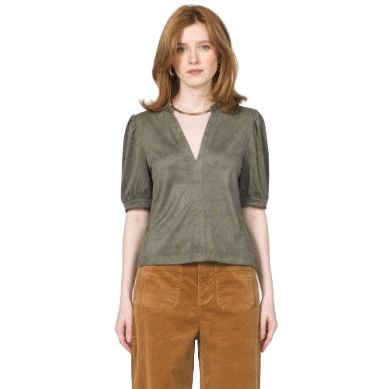 V-neck puff sleeve top 92% Polyester 8% Spandex
