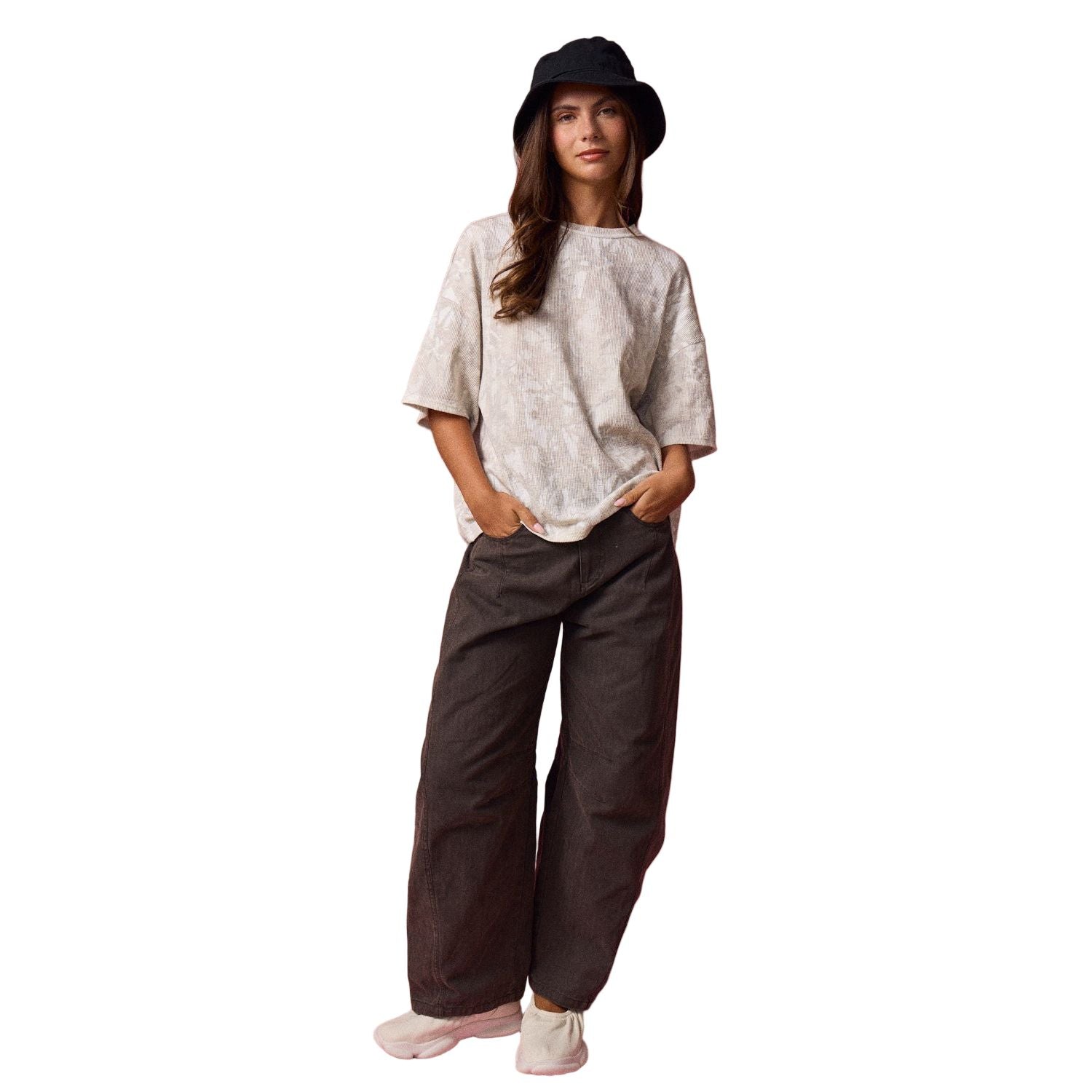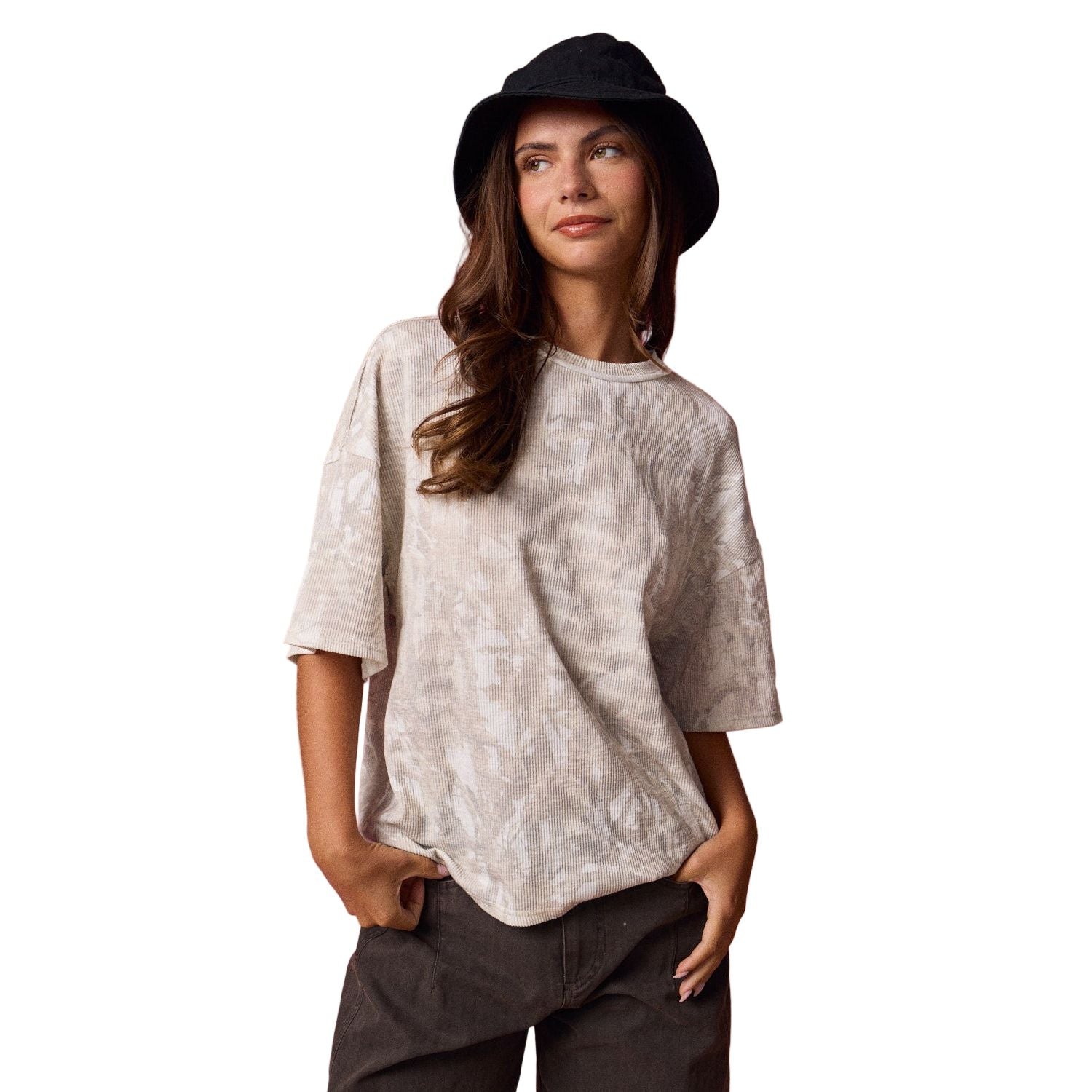 Oversized Ribbed Tee - Heather Oat Effortless comfort meets laid-back style in this relaxed ribbed tee. The perfect piece for casual days when you want to look put-together without trying too hard. Key Features: - Ultra-soft ribbed cotton blend fabric - Relaxed, oversized fit for maximum comfort - Classic crew neckline - Short sleeves with comfortable drape - Versatile heather oat colorway - Perfect for layering or solo wear - Easy care, maintains shape after washing - Ideal for casual weekends or lounging Pair with jeans for everyday cool or dress up with accessories. This wardrobe essential delivers unmatched comfort while maintaining a polished, effortless aesthetic.