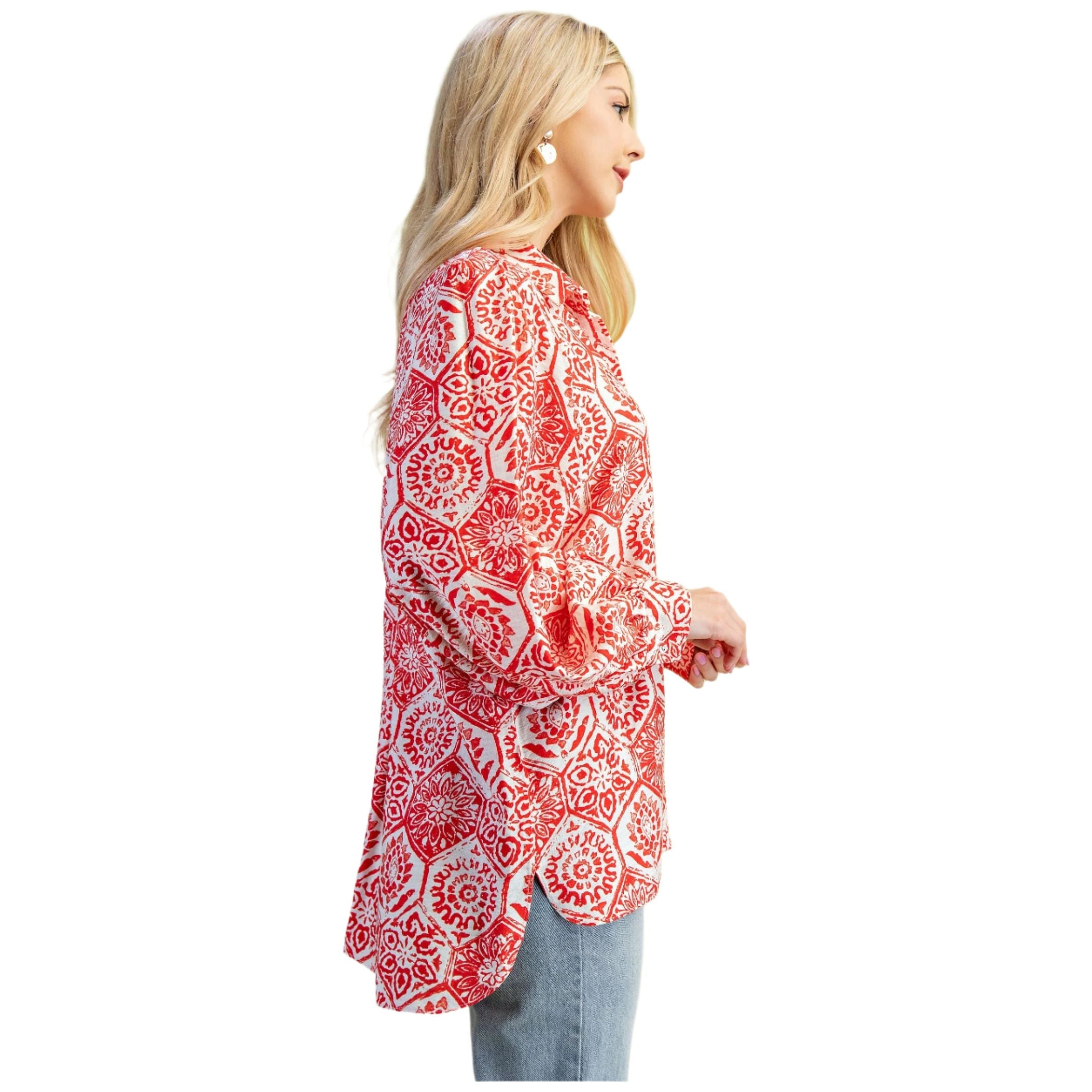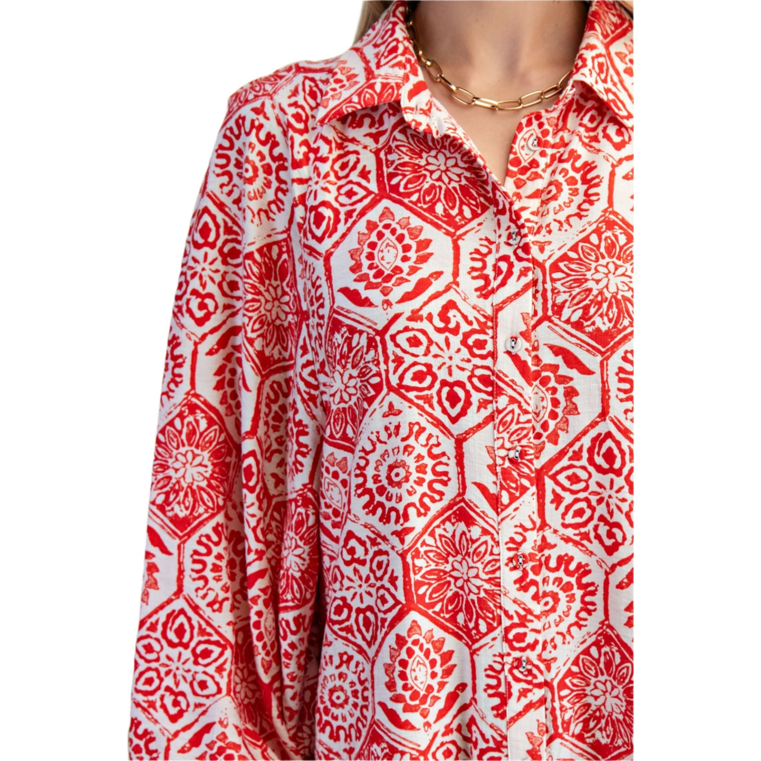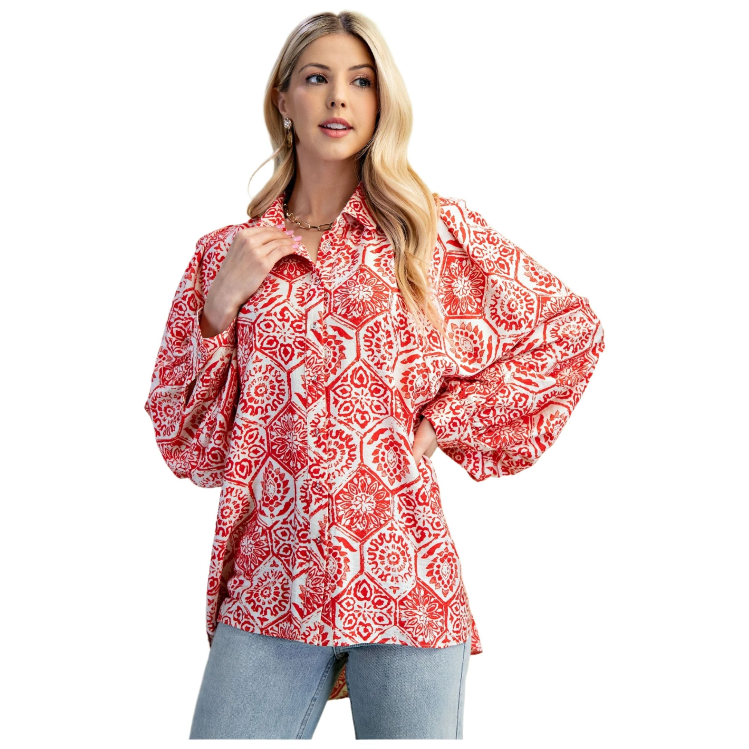 Women's Hexagonal Floral Print Oversized Button Down Shirt TG1912