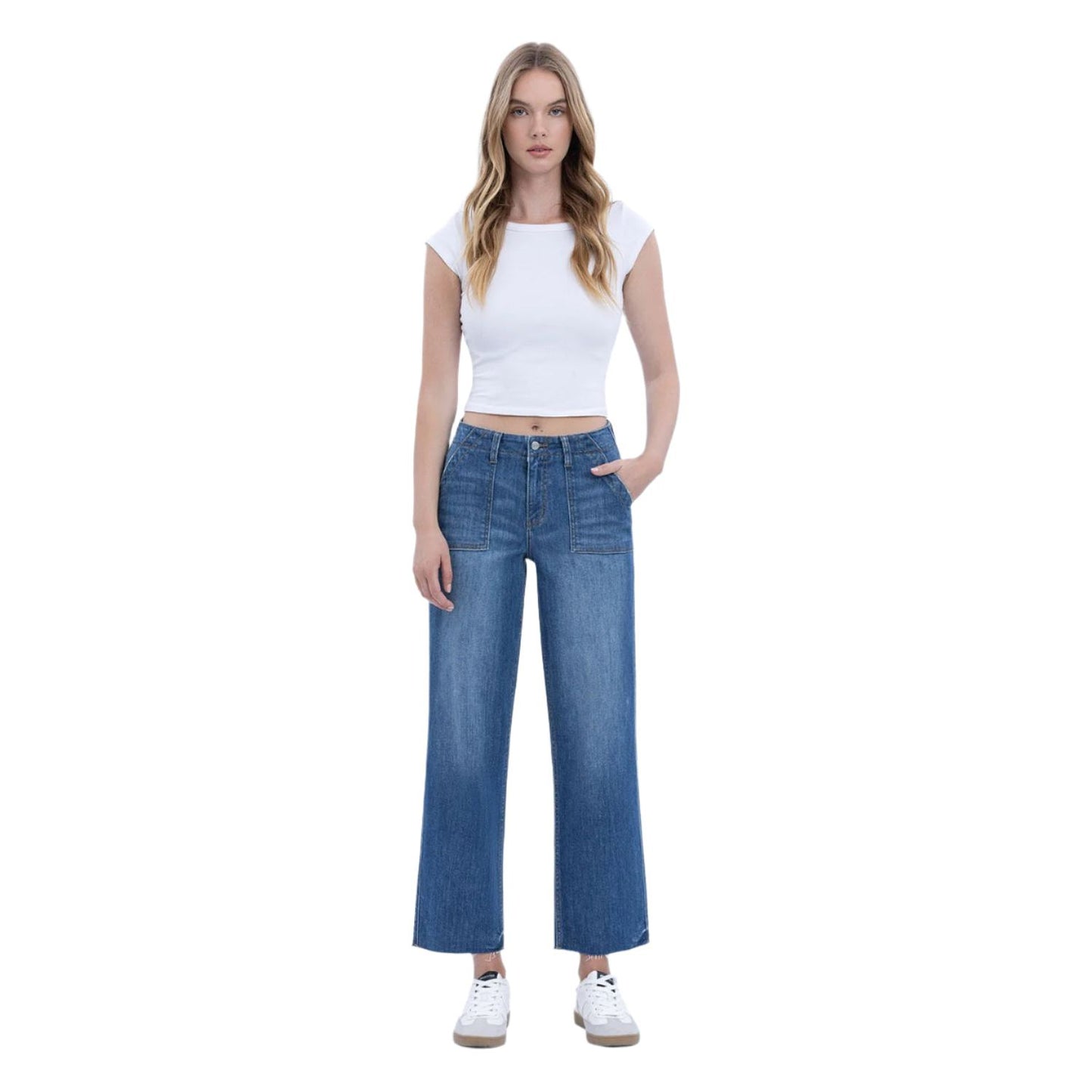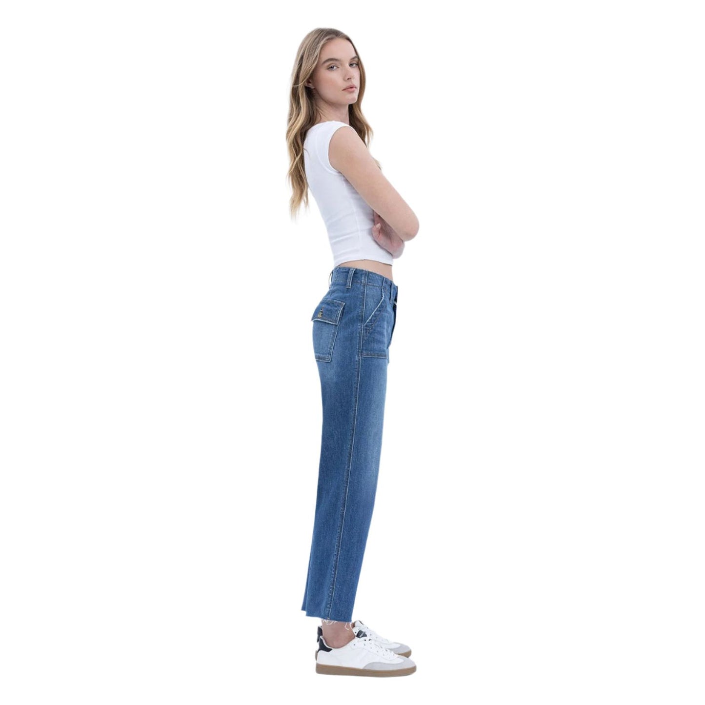 Women's High Rise Crop Utility Pocket Straight Jeans LV1355