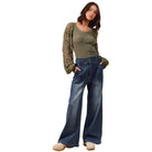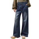 Women's High Waist Pleated Wide Leg Denim Jeans SB8562F-01