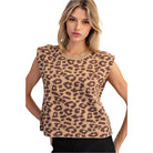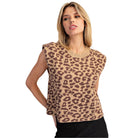 Product Detail: This sleeveless knit top features an allover leopard jacquard pattern with a ribbed crew neckline, lightly structured extended shoulders that create a subtle cap sleeve effect, and a relaxed, slightly boxy fit for a modern twist on classic animal print.