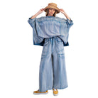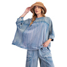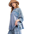 Monkey washed terry knit top -Oversized boxy silhouette -Drop shoulder -Crew neckline -Exposed seams -3/4 Length wide sleeves -Side slits -Small measurements : Center front length - 22 1/8" & Bust- 33"