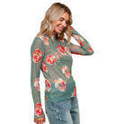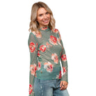 Plus size high neck line long sleeve floral print mesh Semi sheer top with