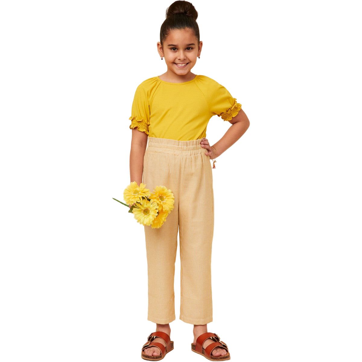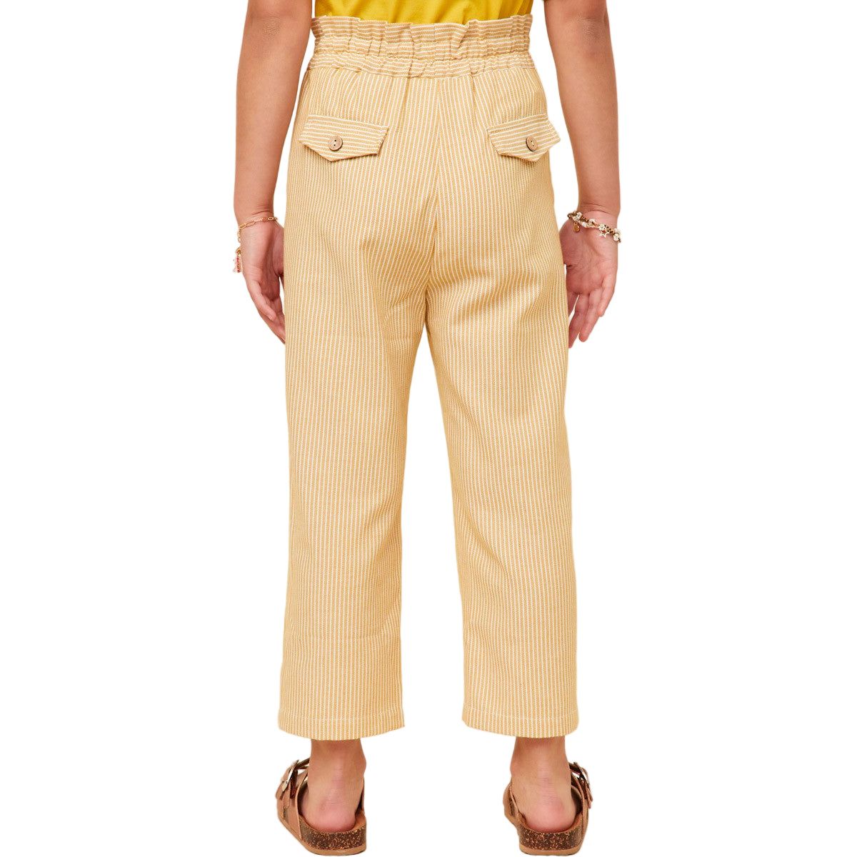 Girls Striped Flap Pocket Paperbag Waist Pants *Stripe Woven Fabric *Straight Leg *Paperbag Waist