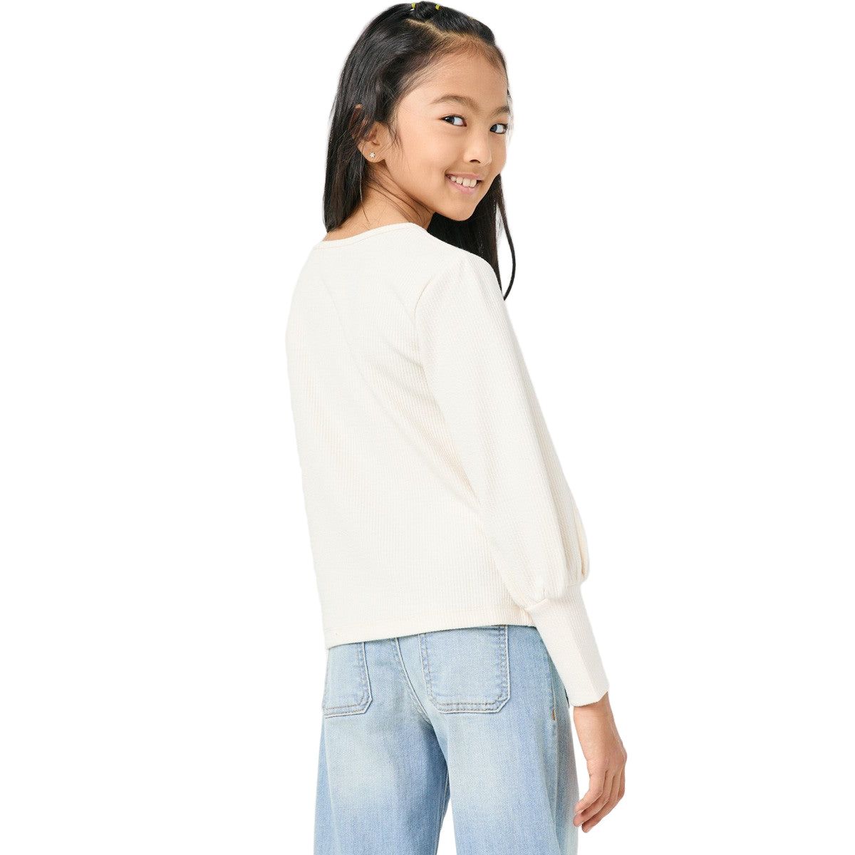 Girls Textured Rib Exaggerated Cuff Knit Top *Ribbed Knit Fabric *Rounded Neckline *Exaggerated Cuffs