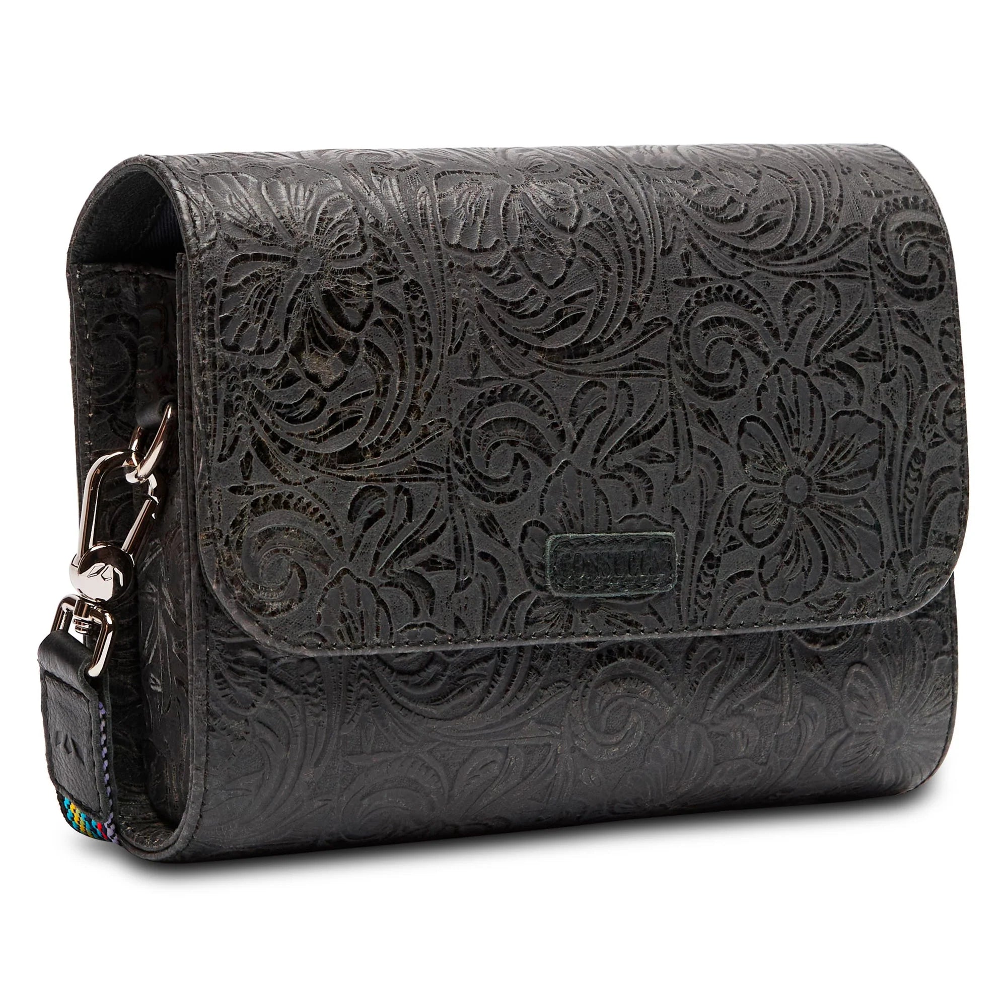 - Adjustable woven crossbody strap