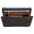 - Steely tooled leather exterior