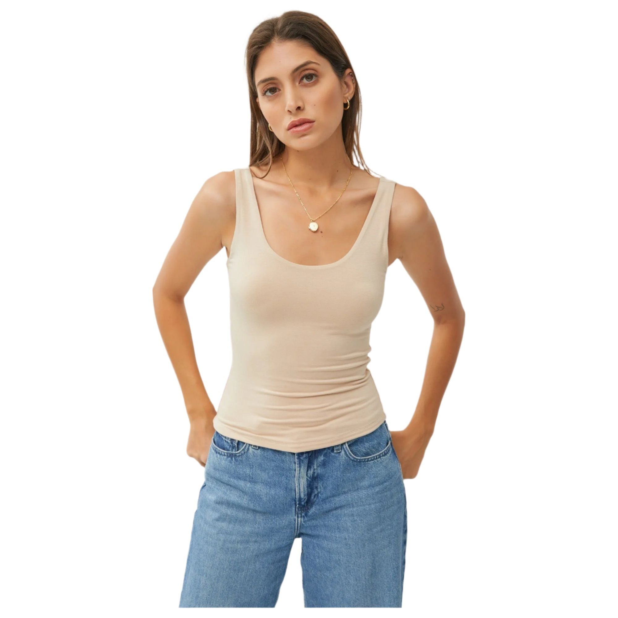 * Jersey Tank * Scoop neck and back * Spandex mix material * Soft and stretchy * Double lined * Fitted silhouette * Basic essential every day